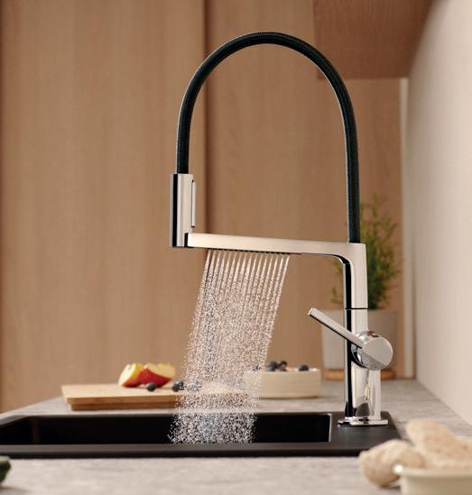 Pour beaucoup, une cuisine esthétiquement parfaite est une véritable carte de visite – et le mitigeur design, la cerise sur le gâteau. Le Talis M54 est notre solution design flexible pour chaque type de cuisine. Laissezvous tenter par un corps de mitigeur fin chromé, d’aspect inox ou noir mat et choisissez le type de bec adapté à votre cuisine – pour un vaste îlot de cuisine ou une cuisine linéaire compacte avec placards muraux. Sa silhouette élancée se fond avec le corps et accroche le regard dans votre cuisine ouverte moderne.