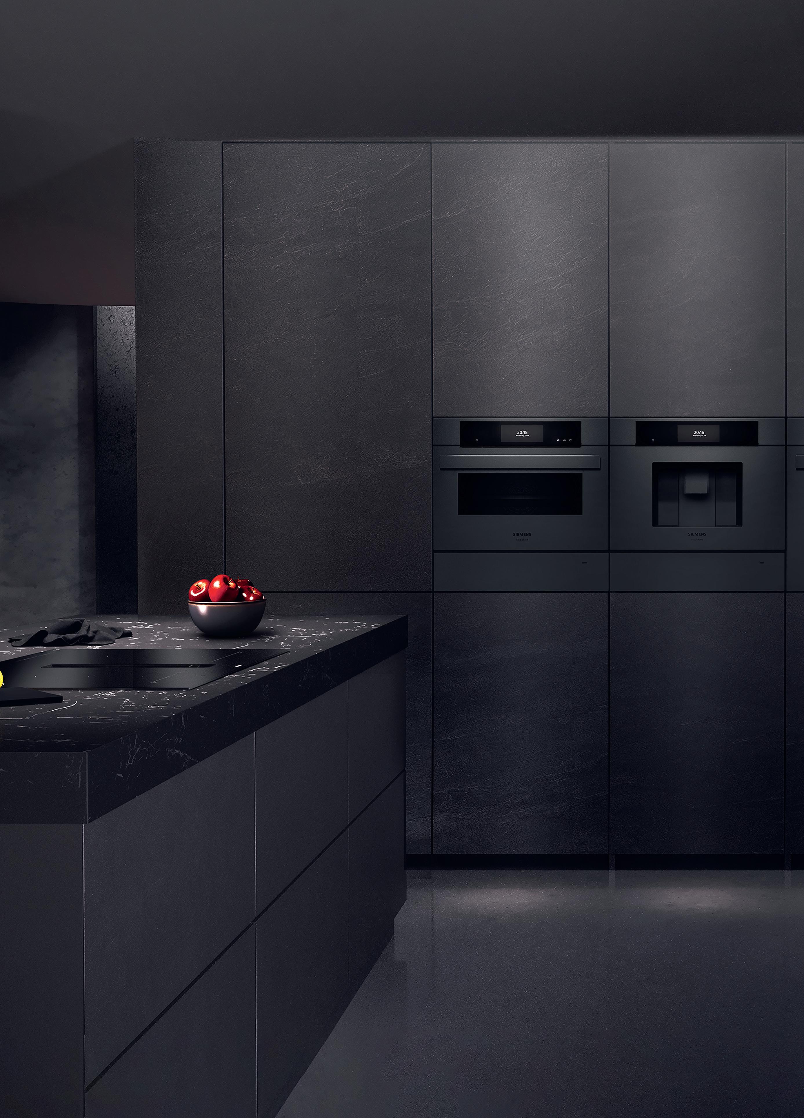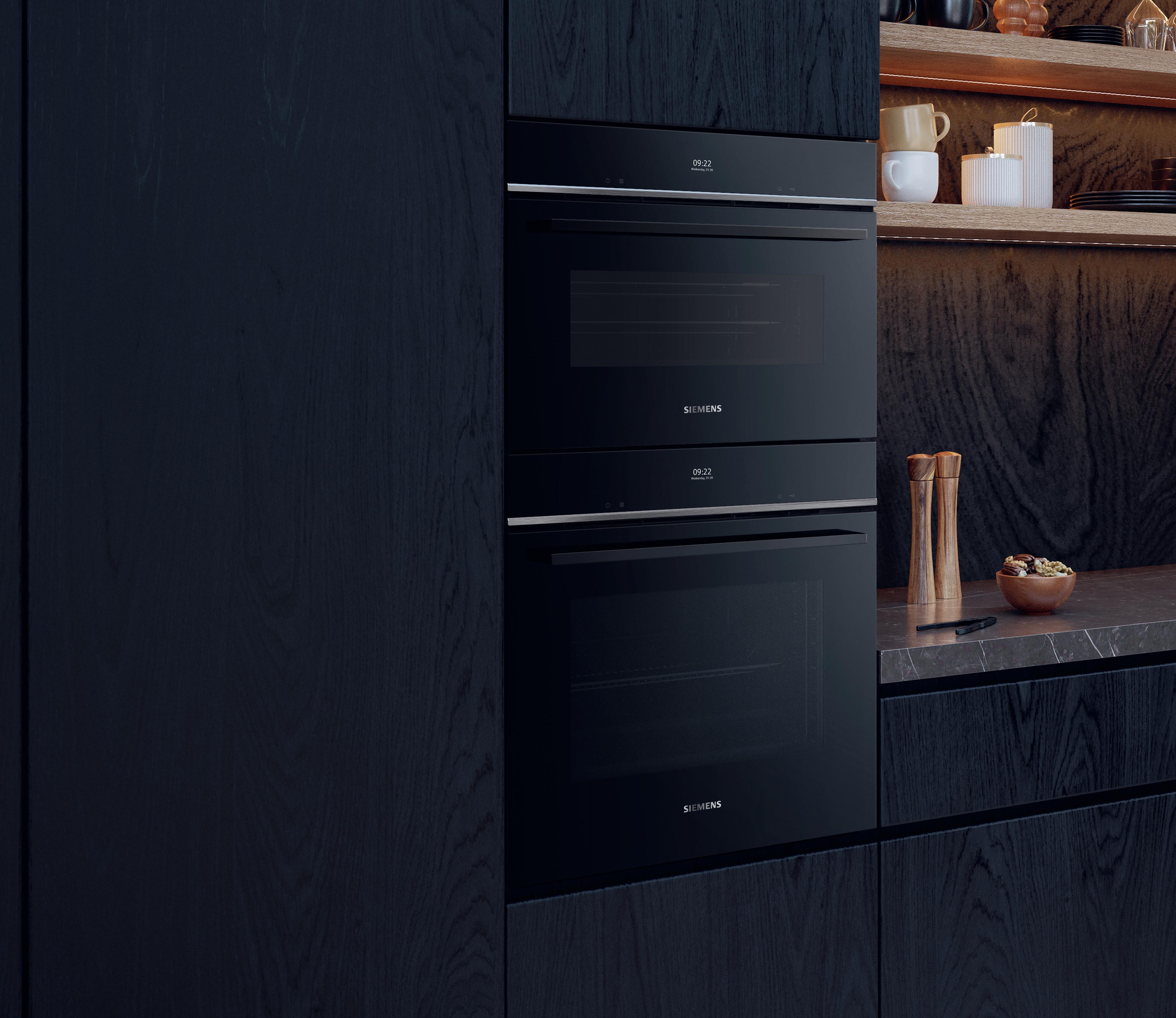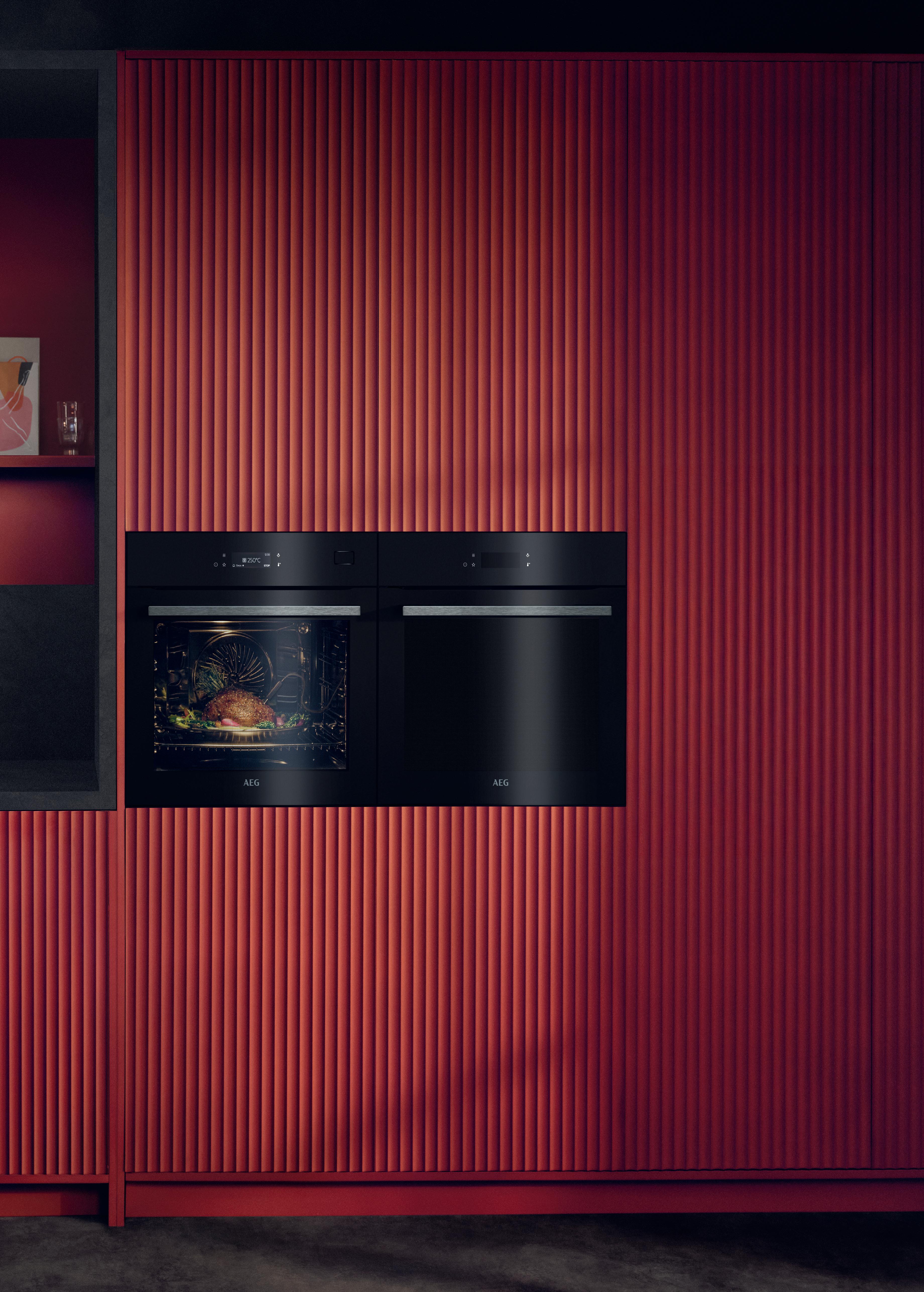 Il contrasto delle scanalature verticali scure, unite alle finiture dei bordi, anch’esse nere, dona alla cucina un'eleganza senza tempo. Le scanalature verticali scure e le fughe verticali si fondono armoniosamente tra loro, così che i singoli armadietti sembrino un unico mobile.
