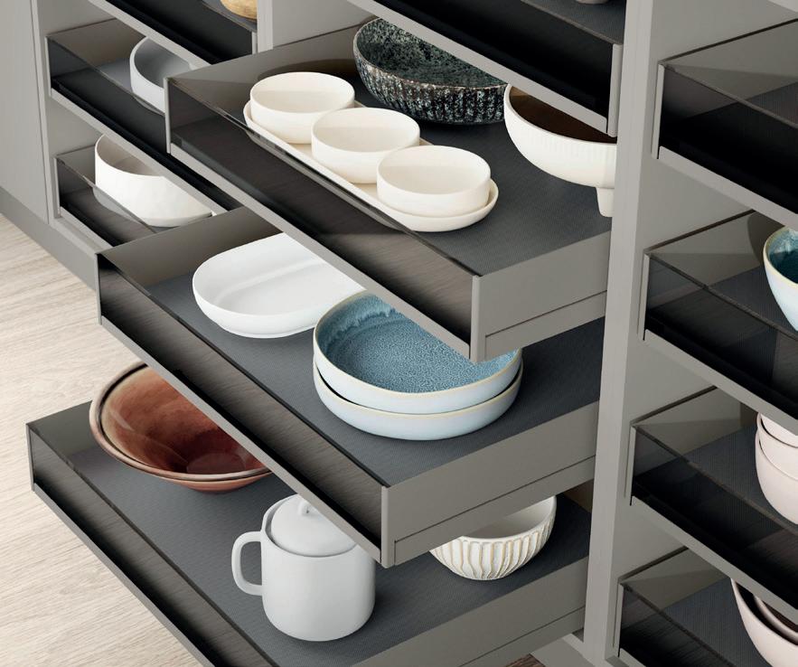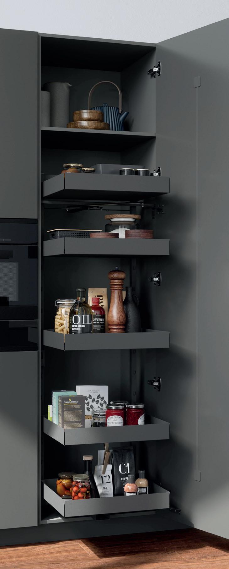 I ripiani estraibili aiutano a mantenere l'ordine in cucina e facilitano l'accesso agli elettrodomestici.