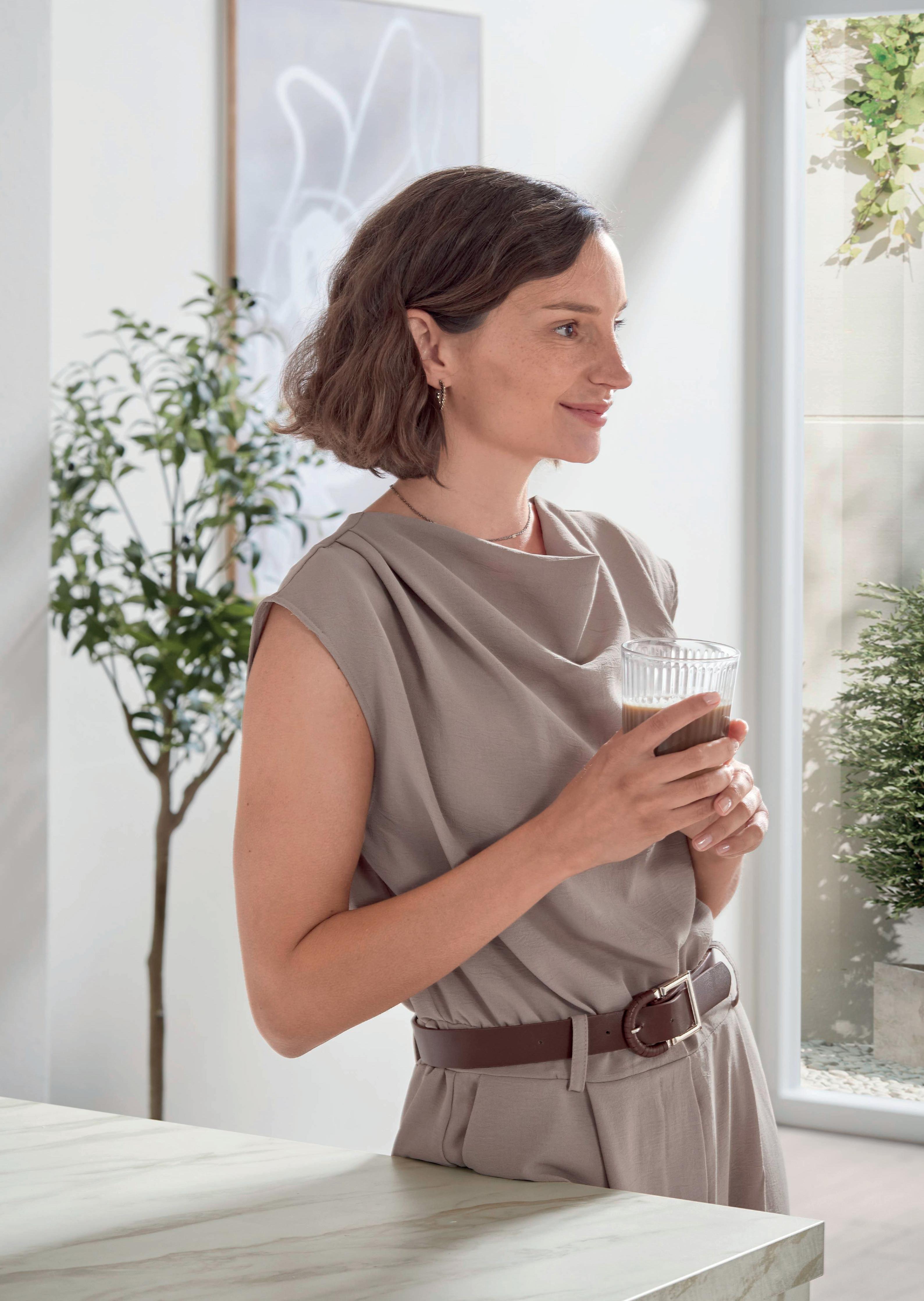 La modernità abitativa incontra lo spirito del tempo contemporaneo. La calda tonalità terrosa Macchiato crea un ambiente tranquillo e raffinato, che conquista in particolare la clientela amante del design. In combinazione con un decoro in legno chiaro si crea un effetto di alta qualità, che si adatta perfettamente a concetti di cucina e soggiorno sofisticati.