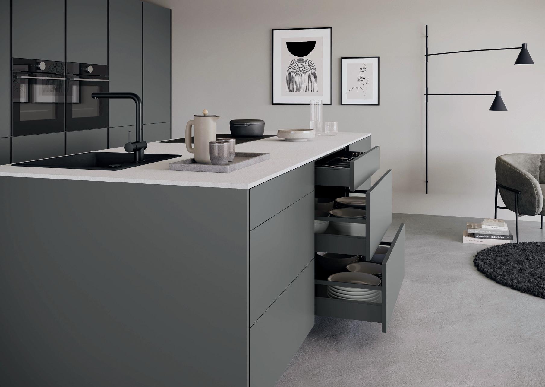Con i nuovi profili arrotondati per i frontali dei mobili ampliamo la nostra varietà di design per la progettazione di cucine e ambienti abitativi. I profili arrotondati creano continuità e sottolineano il carattere fluido degli spazi e delle cucine moderne – una risposta concreta alla crescente richiesta di interni organici e accoglienti.