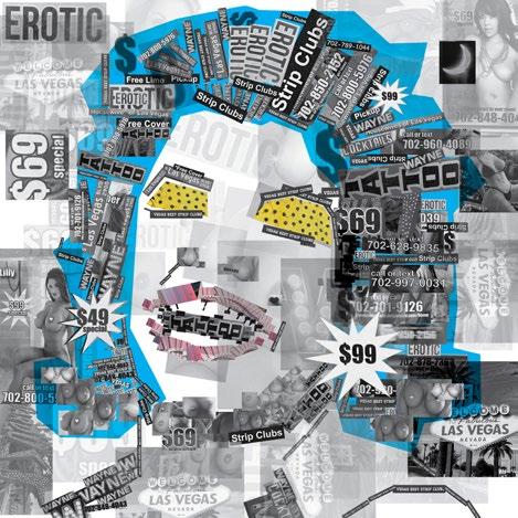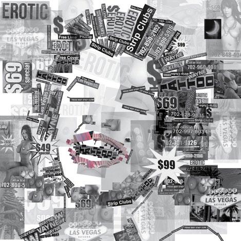 RIGHT: Inspiration comes from everywhere, even the cruddy streets of Las Vegas, NV. Shown is my process of creating, Marilyn, a digital collage made with a collection of erotic escort cards and ads.
