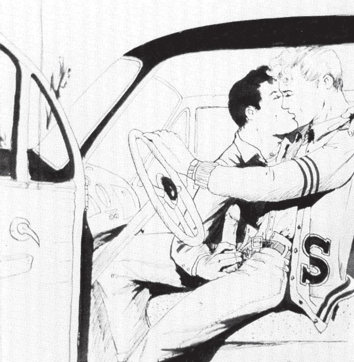 BACKGROUND: A policeman in tight-pants disguise waits on a Hollywood street to be solicited by homosexuals cruising by in cars.