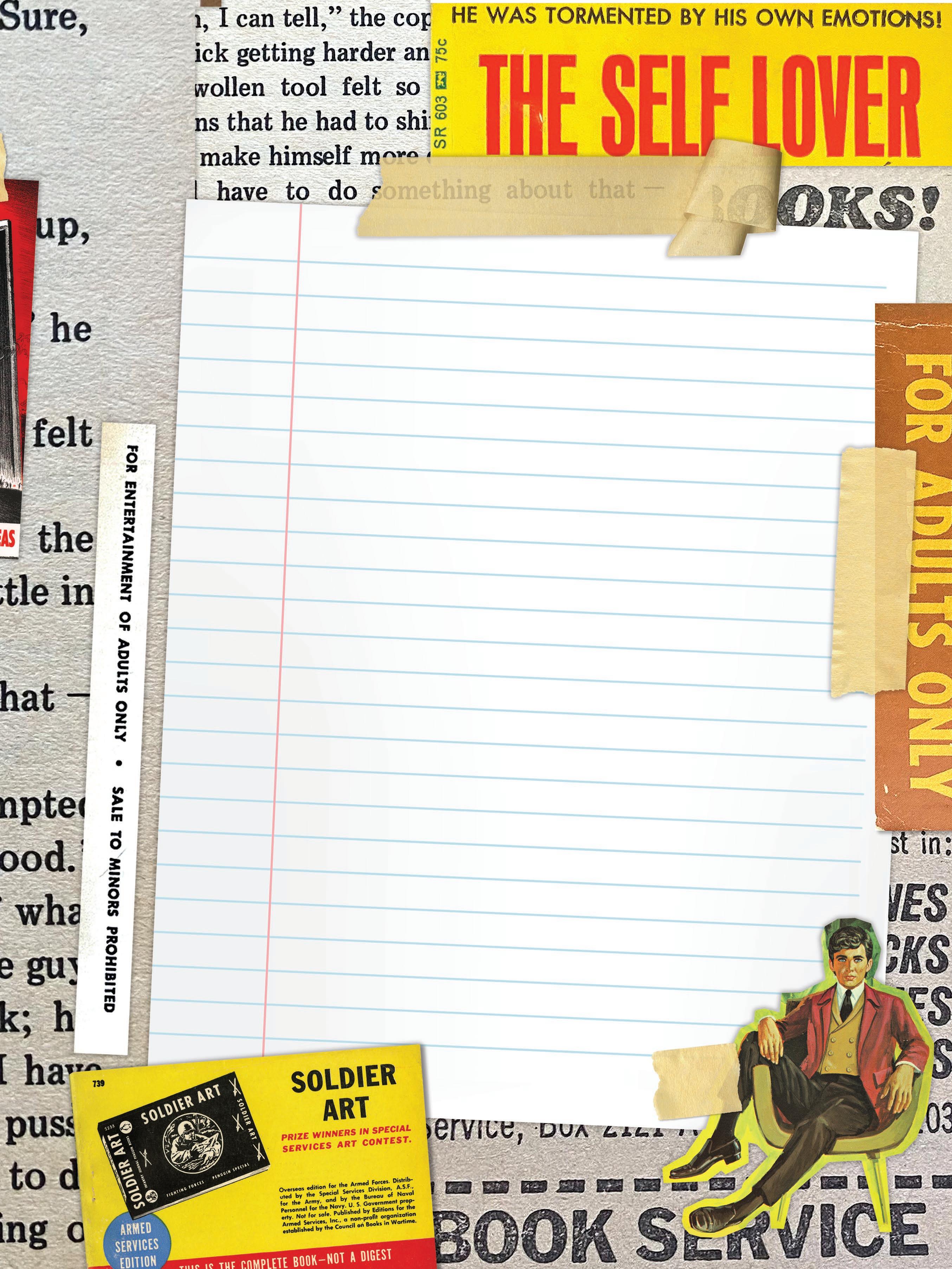 Inspiration and imagery for this digital collage was pulled from the 1963 propaganda film Perversion for Profit, narrated by George Putnam, financed by Charles Keating through Citizens for Decent Literature. The film argues that sexually explicit materials corrupt young viewers and readers, leading to acts of violence and "perverted" attitudes regarding sex—including inclination toward homosexuality.