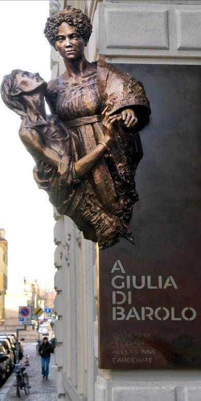 A inizio anno all’angolo tra via delle Orfane e via Corte d’appello è stata inaugurata una scultura dedicata alla marchesa Giulia di Barolo, benefattrice ottocentesca che si è impegnata per migliorare la condizione delle donne carcerate della città. Le donne raffigurate sono in realtà due: con la marchesa c’è anche un’altra persona, simbolo delle detenute aiutate in vita dalla nobildonna. La scultura emerge a circa due metri d’altezza dal marciapiede, dal muro esterno del palazzo dove visse la marchesa. Il committente del monumento è l’Opera Barolo, l’istituzione che si occupa di gestire l’eredità materiale e sociale di Giulia di Barolo.