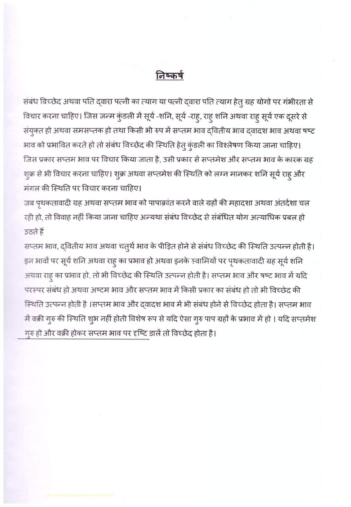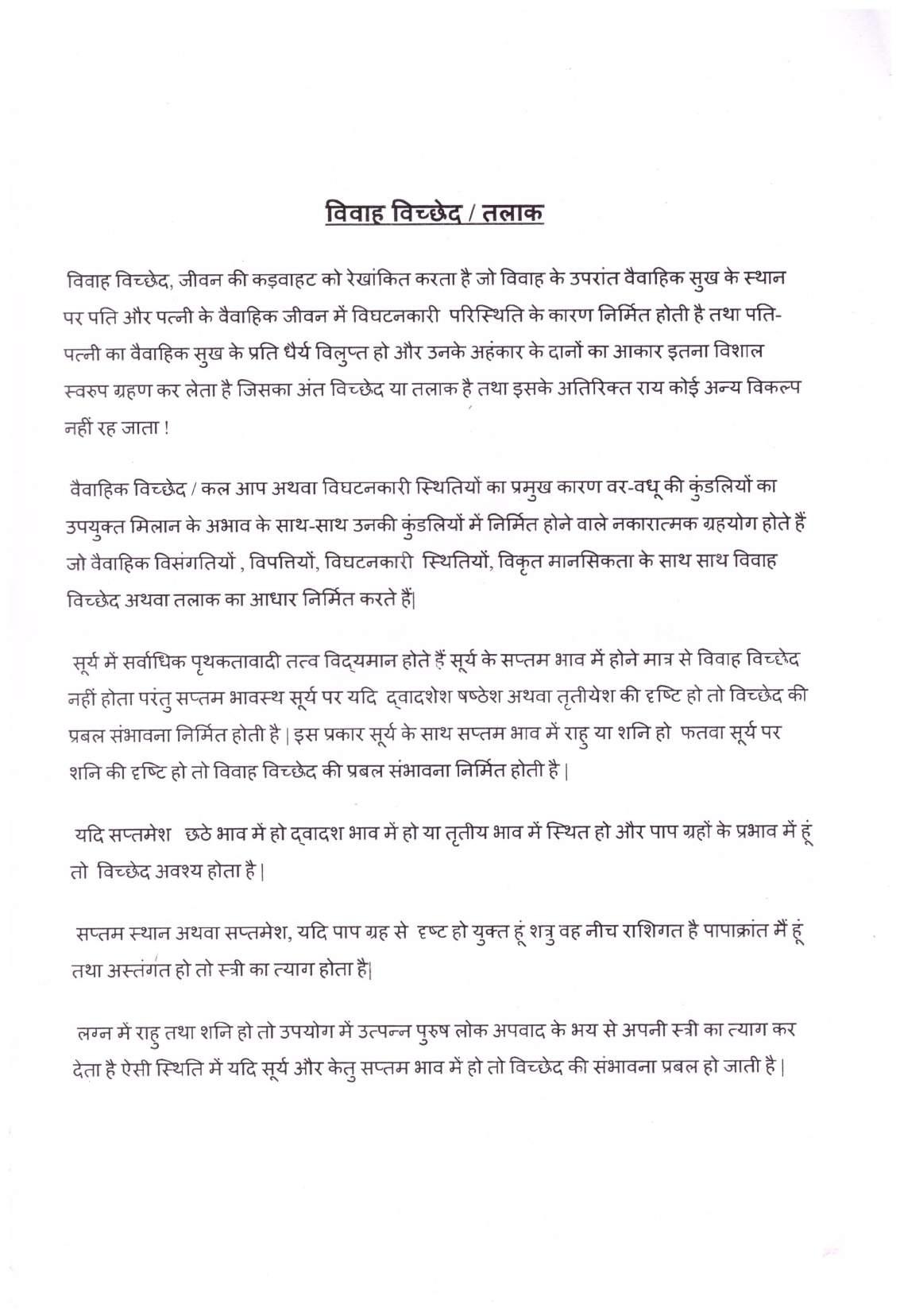 विवाह विच्छेद, जीवन की कड़वाहट को रेखांकित करता है जो विवाह के उपरांत वैवाहिक सुख के स्थान पर पति और पत्नी के वैवाहिक जीवन में विष्टनकारी परिस्थिति के कारण निर्मित होती है तथा पति-पत्नी का वैवाहिक सुख के प्रति धैर्य विलुप्त हो और उनके अहंकार के दोनों का आकार इतना विशाल स्वरूप ग्रहण कर लेता है जिसका अंत विच्छेद या तलाक है