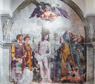 The Church of San Lorenzo in Rorai Grande, built in the early 20th century on earlier structures, preserves frescoes by Il Pordenone (1516) and by Marcello Fogolino depicting the Virgin, the Doctors of the Church and the Evangelists, characterised by realism and sombre tones.