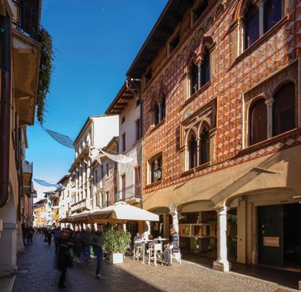 The elegant heart of Pordenone, this street is a true open-air museum where frescoed palaces, arcades and noble architecture recount centuries of history. The frescoes, dating from the 15th to the 17th centuries, depict floral motifs, sacred figures, coats of arms and mythological scenes, rendered in the characteristic colours of Renaissance mural painting. Strolling along the street, visitors breathe in a unique atmosphere in which art and everyday life intertwine, beautifully enhanced in the evening by the warm glow of the streetlights.