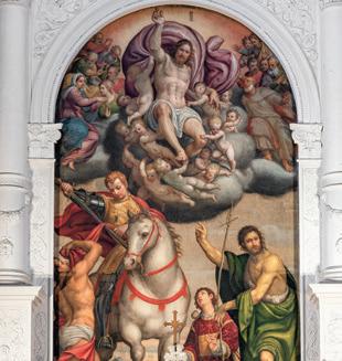 The largest fresco cycle painted by Il Pordenone in Friuli is found in the Church of Saint Peter the Apostle in Travesio. The artist worked here in several phases between 1516 and 1524/27, decorating the apse with the Stories of Saint Peter: a series of spectacular and complex scenes animated by intense vitality, dynamism and a rich array of figures. The church also preserves an altarpiece by Pomponio Amalteo, Il Pordenone’s pupil and son-in-law, who carried forward his stylistic legacy. Completing the church’s artistic heritage are a splendid portal and a baptismal font decorated with musical putti, among the finest works by the celebrated sculptor Pilacorte.