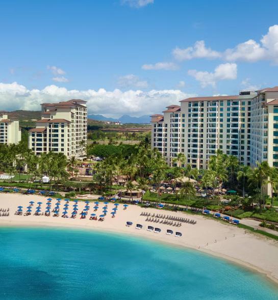 Pamper yourself at this premium vacation ownership resort, Marriott Ko Olina Beach Club, surrounded by clear blue waters and a picturesque lagoon. Just steps from the ocean on the island of Oahu, the resort is nestled within a beautifully landscaped, gated community. Many popular attractions and only half an hour from the excitement of Honolulu. Soak up the sun by one of our three outdoor pools, work out in our state-of-the-art fitness center or indulge in a treatment at our resort’s tranquil on-site spa. Make sure to sample the tasty cuisine at the restaurants before returning to your villa vacation rental. During your stay enjoy complimentary Wi-Fi access and stunning beach, mountain and resort views.