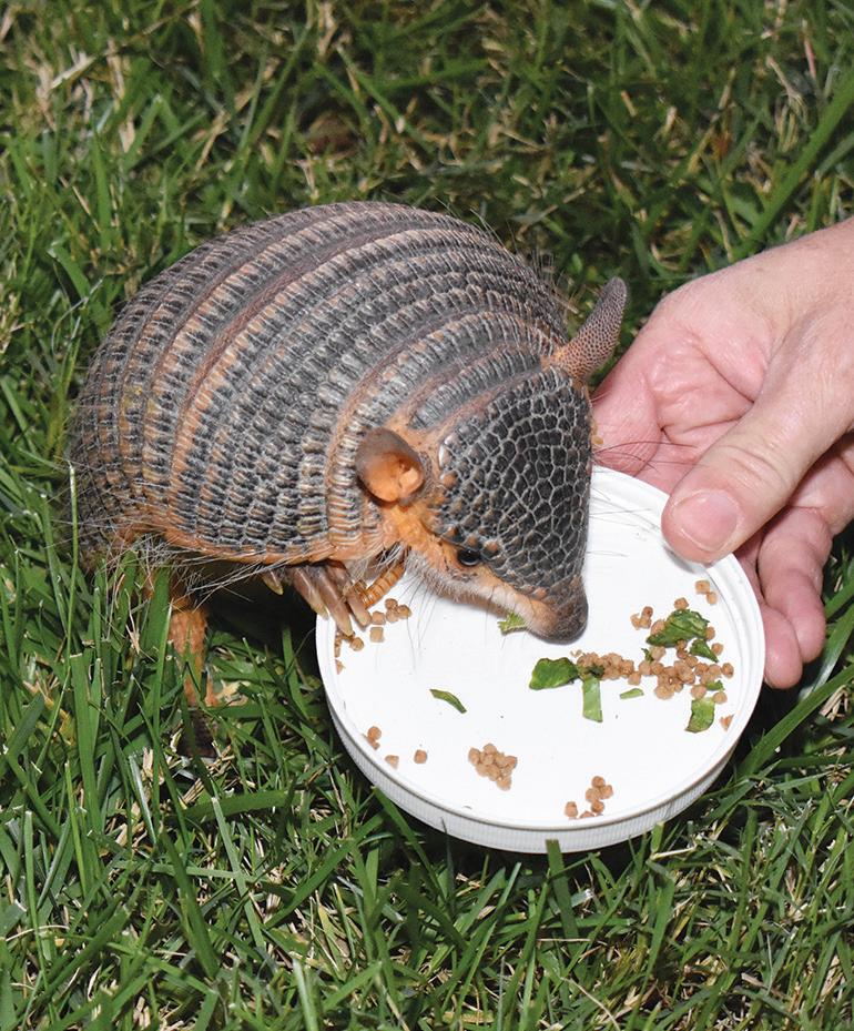 Everyone admired Sandra Dee, a little Screaming Hairy Armadillo. It is a burrowing armadillo found in the central and southern parts of South America. The adjective “screaming” derives from its habit of squealing when handled, and Sandra Dee, too, luxuriated on the lush lawn while snacking on her food.