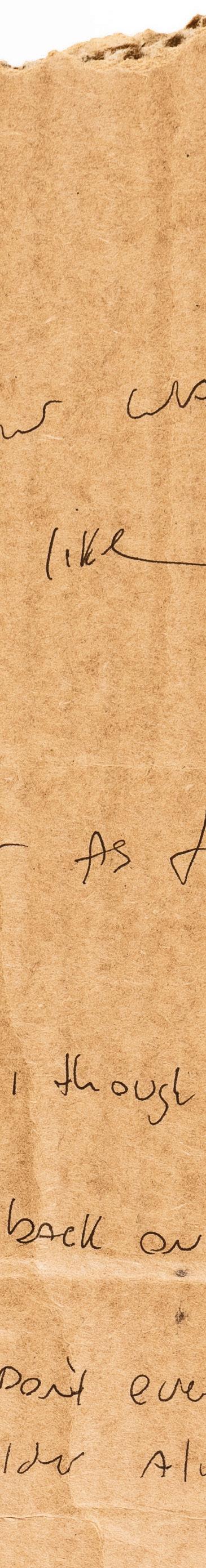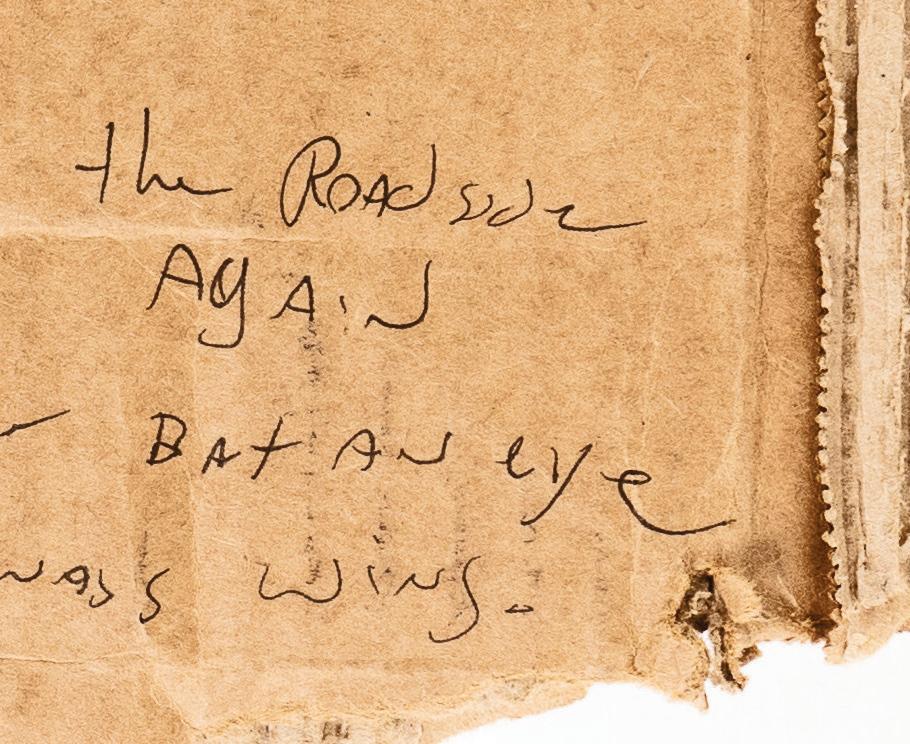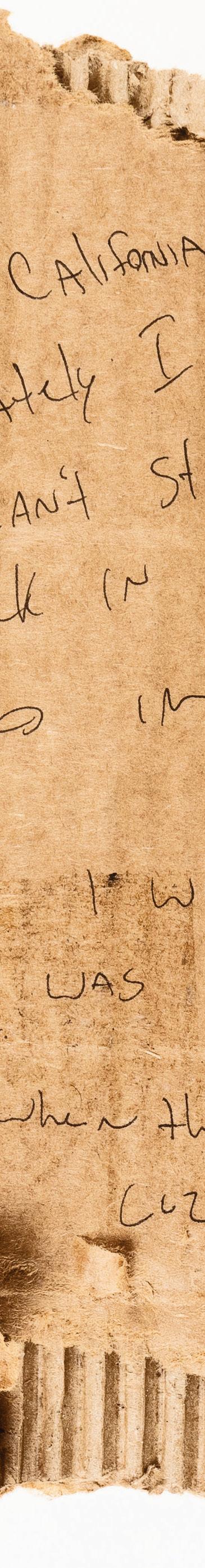 Billy Strings penned the lyrics to “California Sober” on this scrap of cardboard, recorded it as a duet with Willie Nelson, and released it as a single one year ago this month.