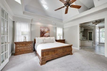 This home sits on 2.63 acres within a gated community. With more than 9,000 square feet, the abode is, “meticulously crafted” and “an entertainer’s dream.” The square footage offers a chef’s kitchen that connects to an eat-in kitchen and living room, with three bedrooms on the main level, including the primary suite. The second floor also has three bedrooms, storage space and a large playroom, movie room, home gym and safe room. Along with an outdoor kitchen, pool and fireplace, the backyard also includes a zipline, a creek and a small three-sided barn.