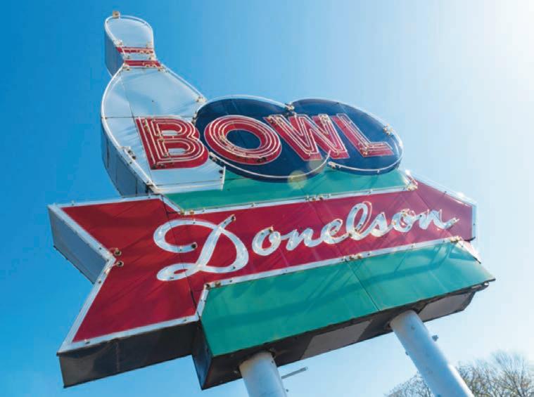 Donelson bears the distinction of being the only place in Davidson County with two bowling alleys. In addition to Donelson Bowl (more properly, the Donelson Bowling Center), there’s the Strike & Spare in the lower level of a strip on Old Lebanon Road, down some stairs lit by gleefully 1970s light fixtures and next to a bartending school, another outpost of Southern Thrift and Donelson Air.