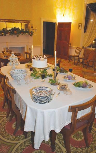 The cake on the dining table, which featured Seven Swans a Swimmin’ on top, was baked with a bean inside. Whoever found the bean would serve as king or queen for the evening and could decide the parlor games to be played and the songs to sing for the celebration.