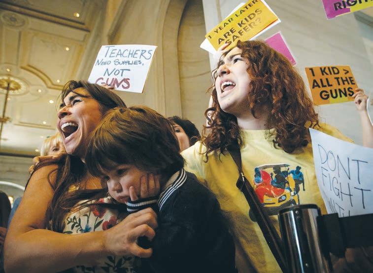 Protesters stage a ‘die-in’ inside of the state Capitol on April 23. Protesters unveil a banner that reads ‘This is not over see you at the polls’ during the final day of the 2024 legislative session. PHOTOS BY HAMILTON MATTHEW MASTERS District 61 state Rep. candidtate Claire Jones yells at state Rep. Jeremy Faison (R-Cosby) following a House vote passing a bill allowing teachers to carry guns. A protester holds a Pride flag on Feb. 26.