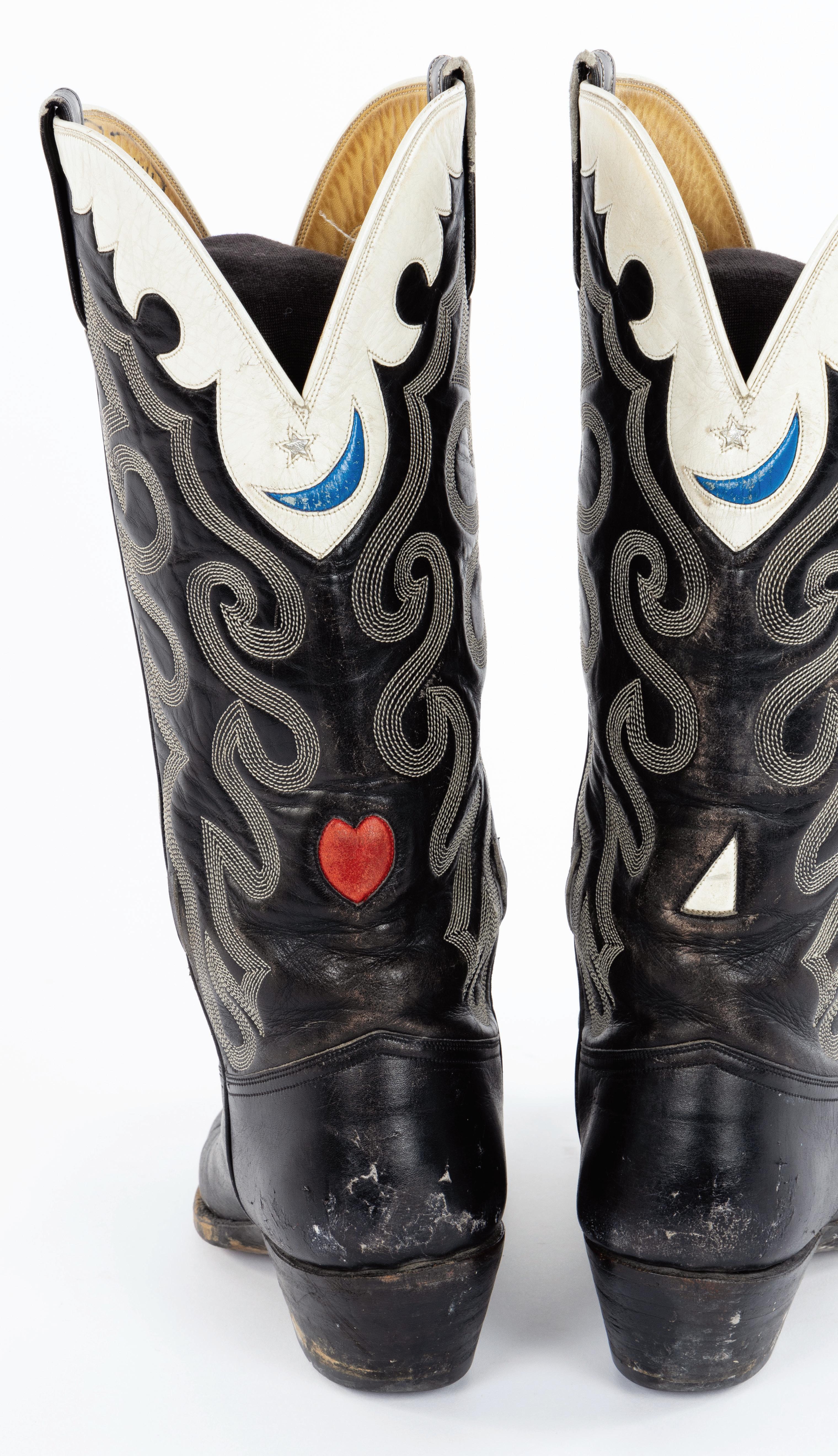 Rosanne Cash wore these handmade Charlie Dunn boots, embossed with moons, stars, and her initials, on the cover of King’s Record Shop, her 1987 album featuring four charttoppers—“The Way We Make a Broken Heart,” “Tennessee Flat Top Box,” “If You Change Your Mind,” and “Runaway Train.”