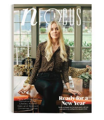 We also cover an impressive amount of incredible events that took place this fall. Nfocus edi tors and writers were in the room for events like Mad Hatter, River Swing, Sunset Safari, Gilda’s Club Red Door Bash and so many more. This month, we take a Step Inside the new Conrad Nashville to explore one of Nashville’s newest luxury hotels. John Bridges helps us with tips and tricks on behaving our best.