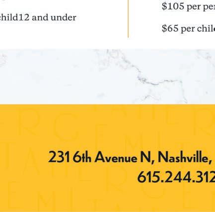 O ering audiences the rare opportunity to see three stunning ballets and a live chamber ensemble, this oneof-a-kind immersive dance experience is returning to e Martin Center for Nashville Ballet with a vantage point often only viewed by members of artistic sta or cast. Nov. 4-13. Tickets $70. e Martin Center for Nashville Ballet, 3630 Redmon St, 615-297-2966, nashvilleballet.com.
