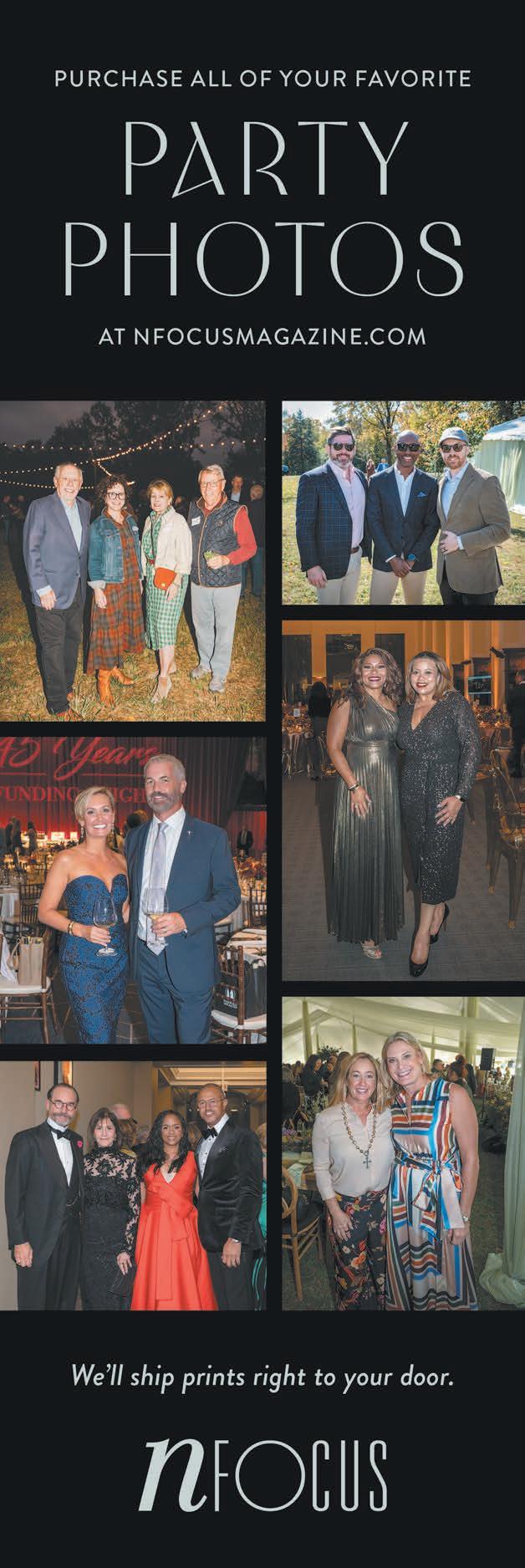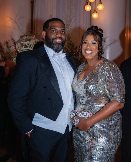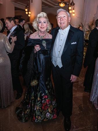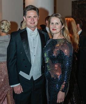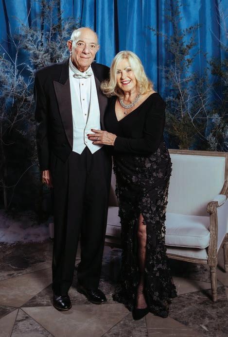 Transforming the venue into a true winter wonderland, 40th Symphony Ball co-chairs Jason Bradshaw and Bob Deal showcased their creative flair. They adorned the room with softblue velvet-draped tables and stunning centerpieces of white roses, hydrangeas and evergreens. A magnificent Christmas tree anchored a corner of the room, while myriad white candles flickered throughout, adding a touch of holiday magic to the gathering.