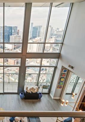 Moving from Florida, the current owner wanted the amenities of downtown living and to be closer to family. Upon entering, it is easy to imagine this home as an ideal space for empty nesters, college students or first-time home buyers. Gone are the days of cold, uninviting downtown lofts. This modern space is warm and inviting for residents and guests alike. Effervescent light streams through the floor-to-ceiling windows, allowing the rooms to feel at once spacious and cozy. The open layout in the living space is ideal for entertaining or enjoying an evening at home. The floor plan offers two bedrooms; however, one bedroom could easily serve as a home office. Another outstanding element is the amount of storage space available both within the unit itself as well as within a storage area in the building. For many months of the year, residents also have access to the usable outdoor space on the expansive balcony.