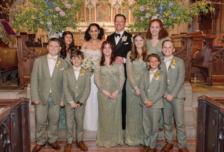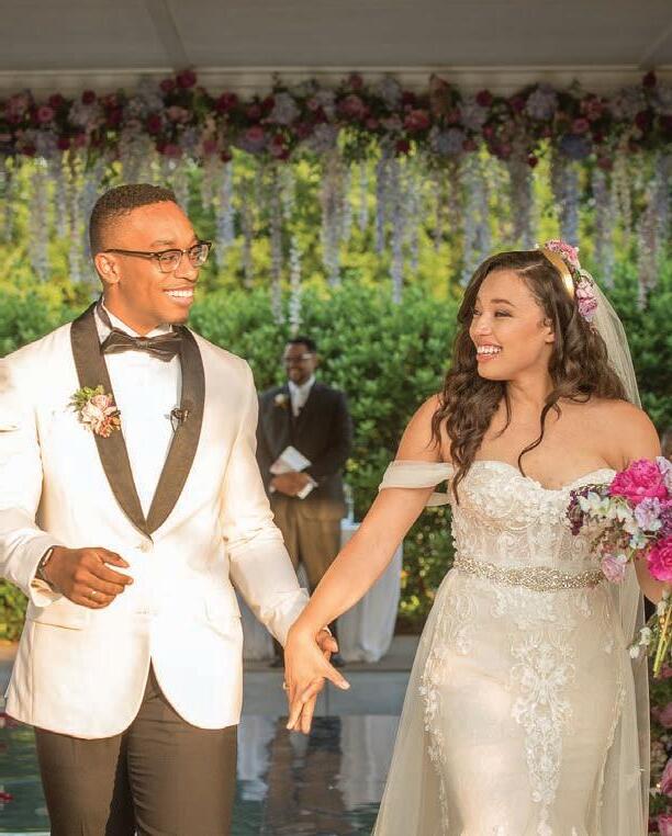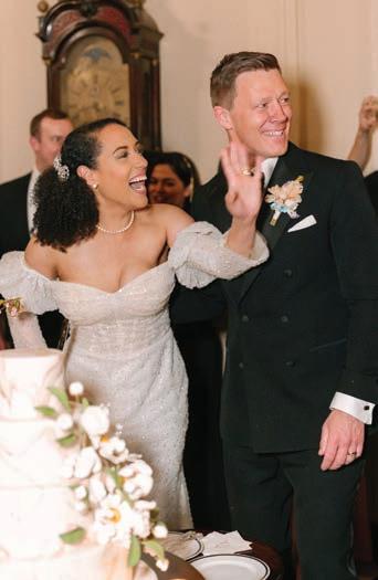 Nashville local Caroline Randall Williams and Tim Darrah met on Bumble, a dating app, in February 2022. ey rst had co ee together at Fido in Hillsboro Village on a Tuesday, and he called on Saturday evening to ask for a lunch date in the upcoming week. “ e next day,” said Caroline, “I told my roommate I thought I’d met the man I was going to marry. e following Tuesday, we went on a lunchtime walk, and the rest was history.” ey declared their love for one another within a month. She met Tim’s 12-year-old daughter; he met Caroline’s mother. “We knew we were doing a thing,” she added. “We were o to the races.”