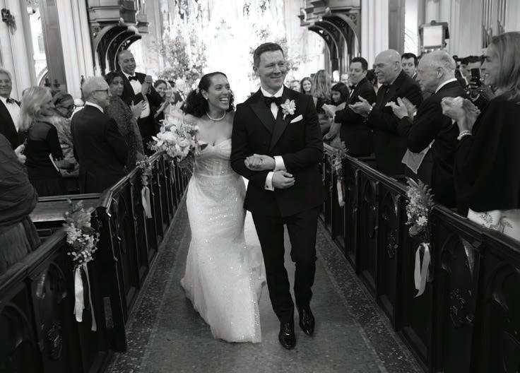 They married in April at Grace Church, the Episcopal parish in New York City where Caroline was baptized, and the Reverend Julia Macy Offinger officiated. The bride wore Vera Wang Bride’s shimmering Lys gown with a cathedral-length train, and later — for dancing the evening away — Caroline changed into a beaded dress by Naeem Khan.