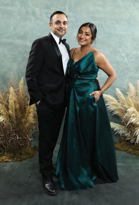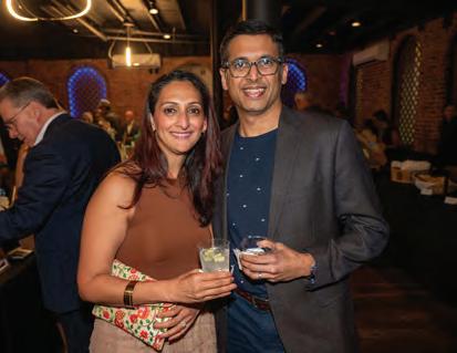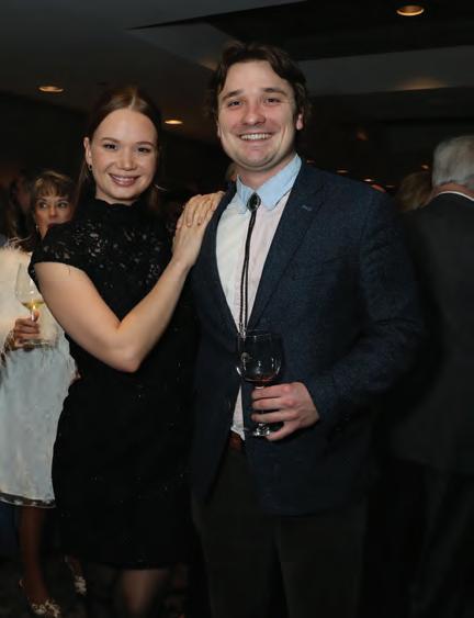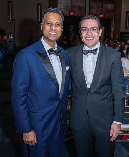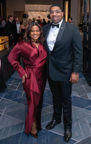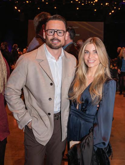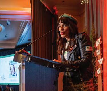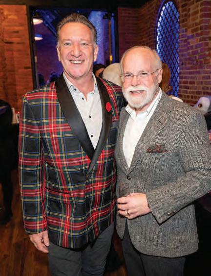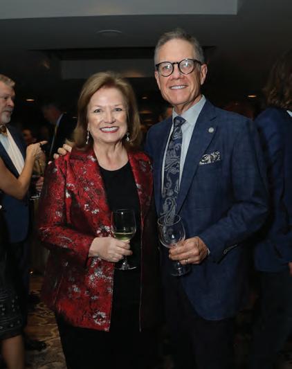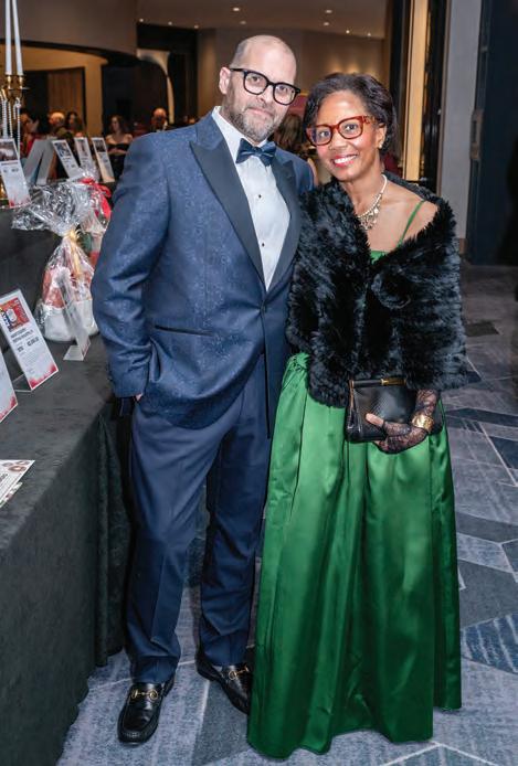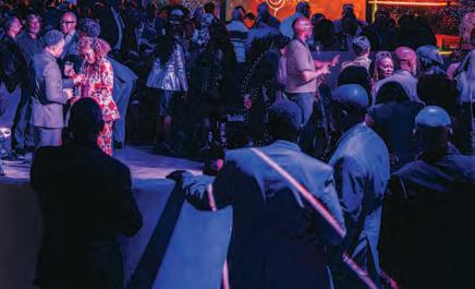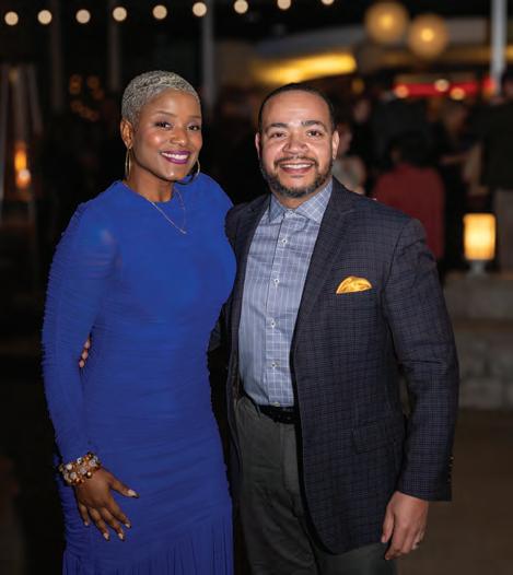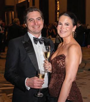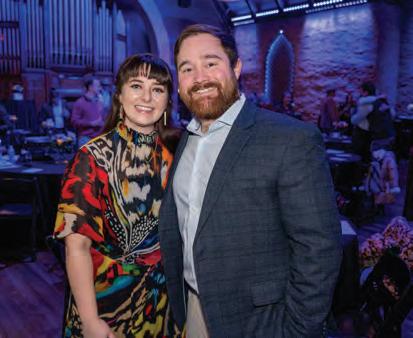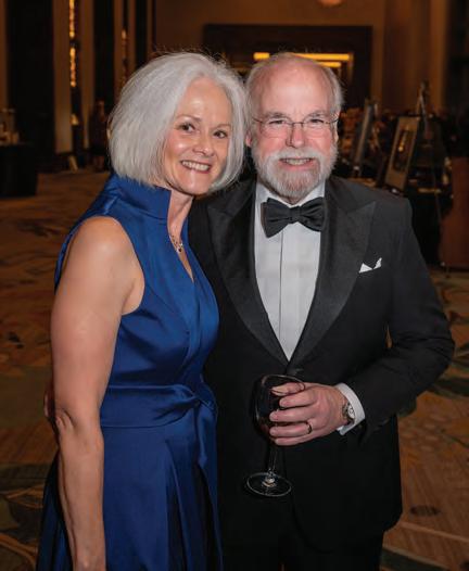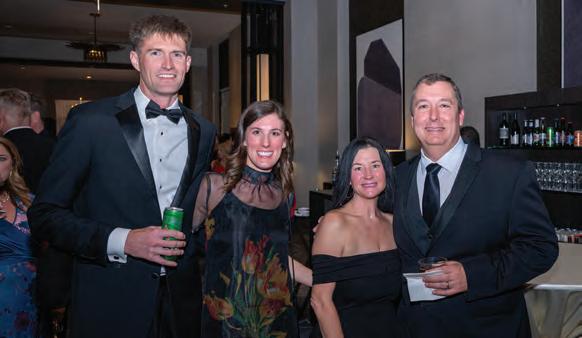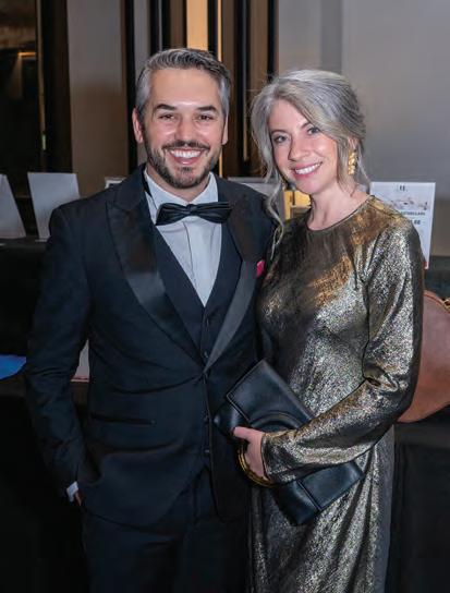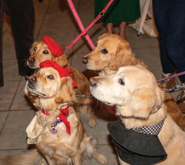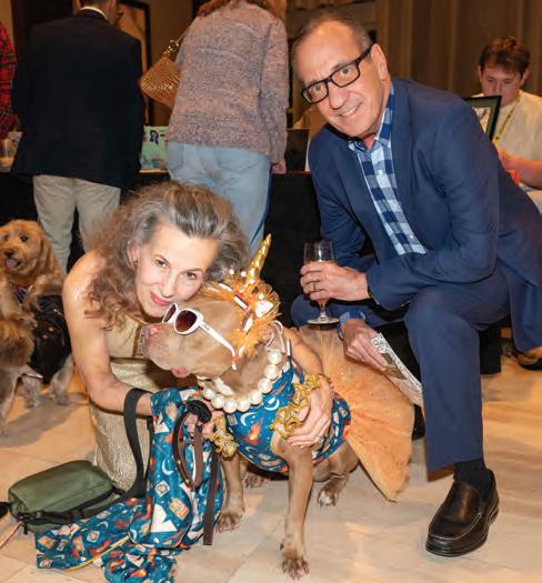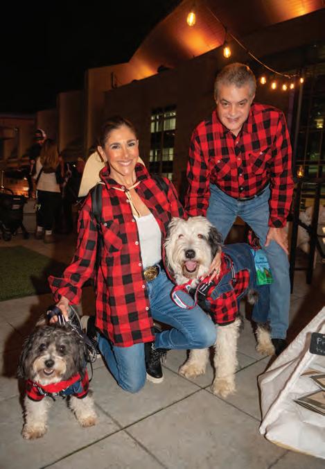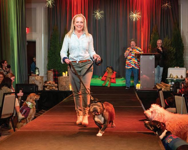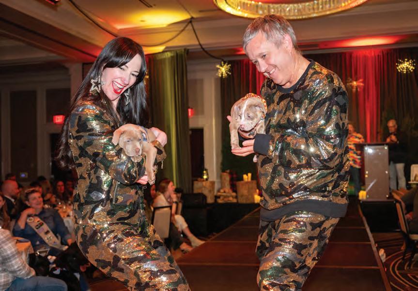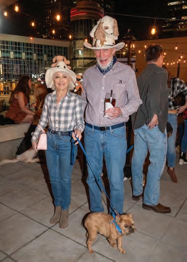 Greeted by co-chairs Heather Derrick and James Held, fourlegged guests (from tiny Chihuahuas to a 200-pound Saint Bernard) and their humans ascended the lobby staircase to find a lively silent auction and a photo booth bringing a wooded camping scene to life. After the humans grabbed a beverage, they visited a patio outfitted with everything you’d need to spend a night in the wild — a tent, camping chairs, a campfire and a cooler — all while enjoying downtown views and a relief turf.