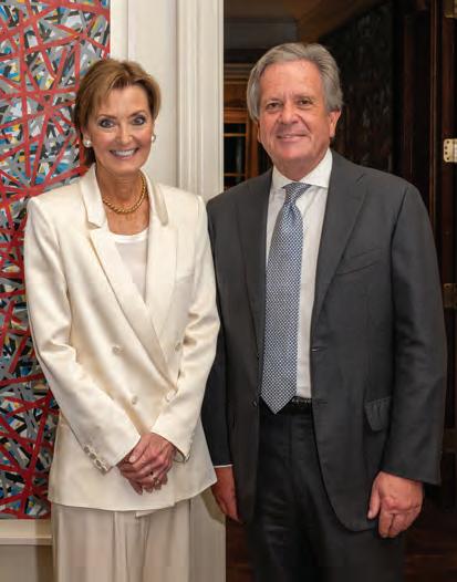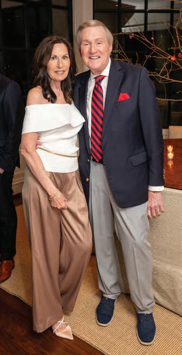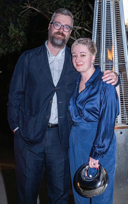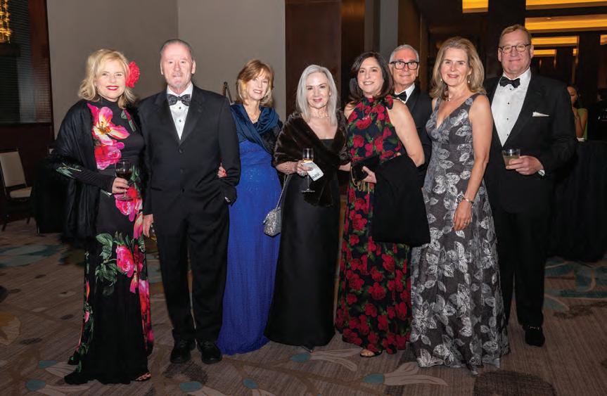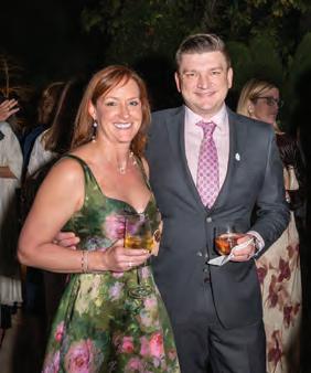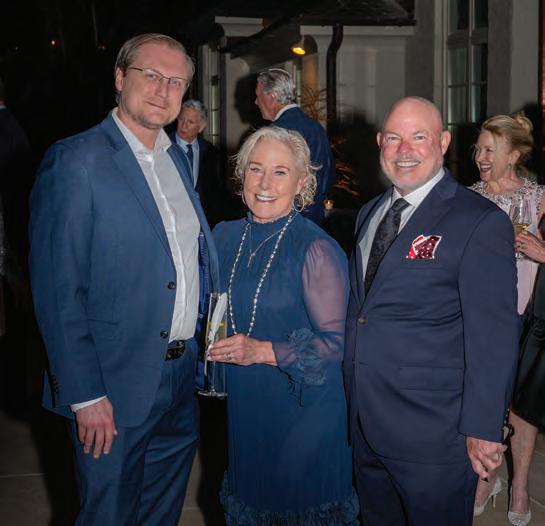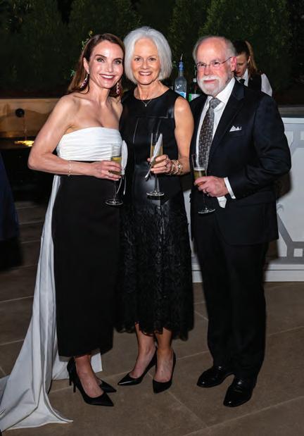 Hosts Barry and his fiancée, Emily Humphreys, warmly welcomed guests, who strolled through the property, admiring the contemporary sculptures and artwork dotting the home, lanai and backyard. Many revelers enjoyed French 75s accented with white feathers — a striking nod to the Ballet Ball’s theme, Swan Lake — while Kristen Winston served up delicious hors d’oeuvres, including her fan-favorite mini grilled cheeses. Event planner Bruce Pittman and his team ensured the evening ran smoothly, and Jim Knestrick provided floral finishing touches.