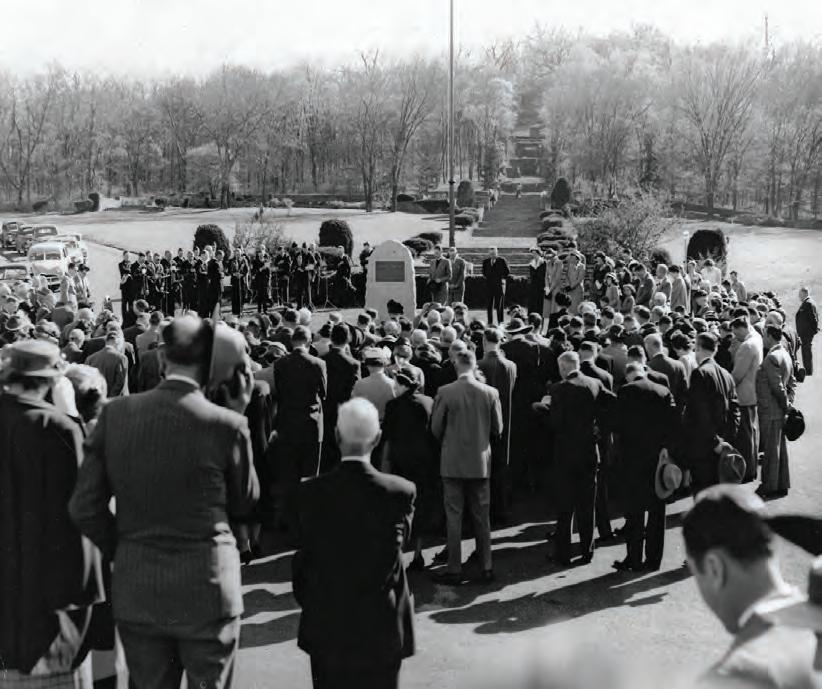 After Lea’s death in 1945, officers from his regiment commissioned a monument to honor his contribution. The plaque, at the base of the park’s iconic steps, was unveiled in 1950 with family and friends in attendance, including (left to right) Gov. Gordon Browning, a clergyman, Luke Lea’s widow Percie Warner Lea, and children Overton Lea, Laura Lea (m. Knox) and Mary Louise Lea Tidwell.