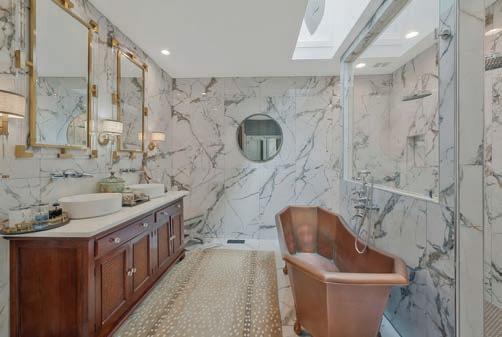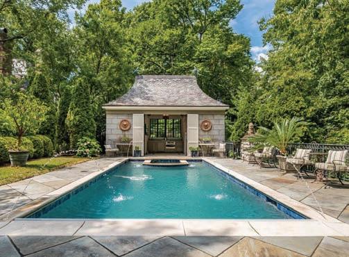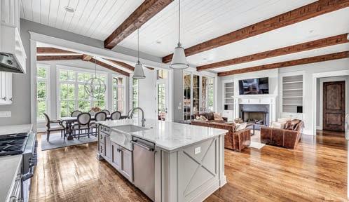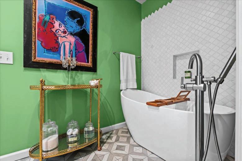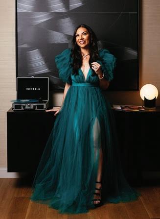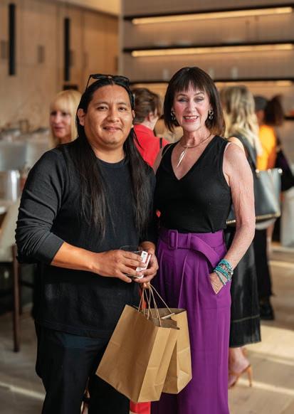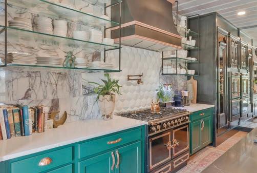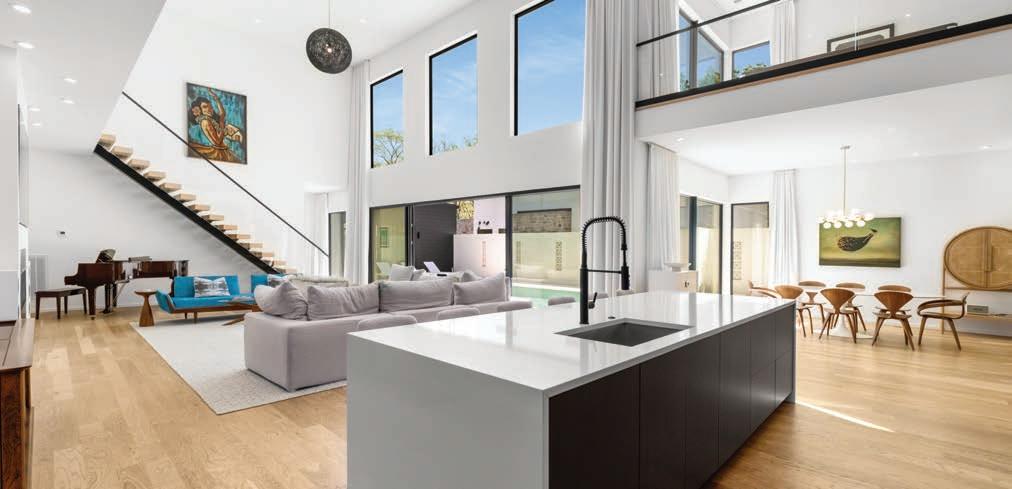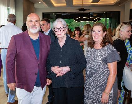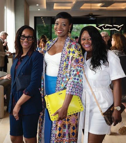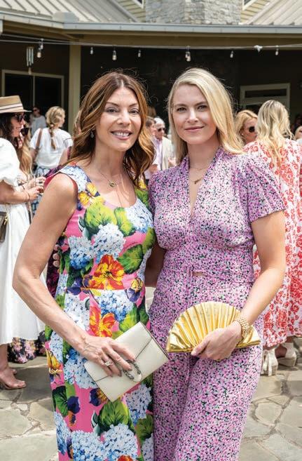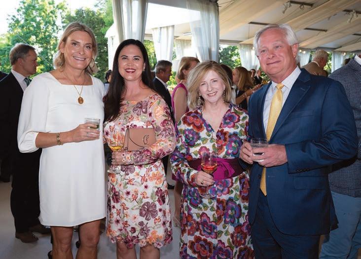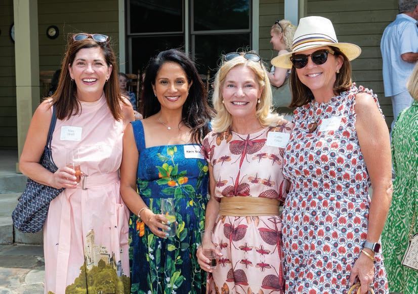 As guests explored the home, servers passed through the main level with delectable hors d’oeuvres from G Catering. The smoked picanha beef canapés were a fan favorite — as were the fregola bites. In the center of the room, guests enjoyed a bountiful nosh table with charcuterie and a variety of cheeses, crudités and dips. Throughout the home, partners like Honeytree Meadery and South Africa’s House of Henkel wines hosted beverage stations. E.E. Brown Leatherworks displayed artwork throughout the home. Singersongwriter Gina Venier performed on the pool deck, which offered the perfect place to relax and take in the sights between bites. It was the kind of night in which guests lingered over cocktails and conversations while the sun slowly dipped behind the trees.
