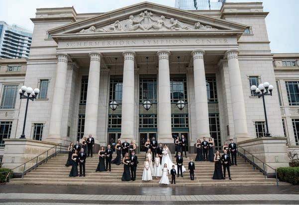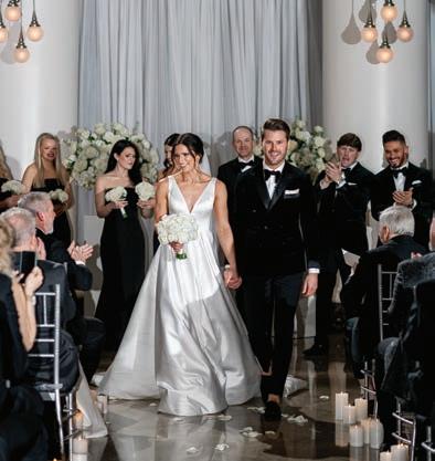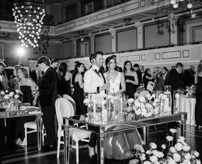 The reception was in the Laura Turner Concert Hall, where guests dined on dual entrées of braised short rib and sage-crusted chicken by Chef’s Market Cafe & Takeaway. Baked in Nashville designed the five-tier cake adorned with the couple’s beloved Frenchie, Frankie, in fondant. The Celebrity All-Star Band performed, and guests enjoyed espresso martinis chilled through an ice sculpture luge carved with the couple’s initials.