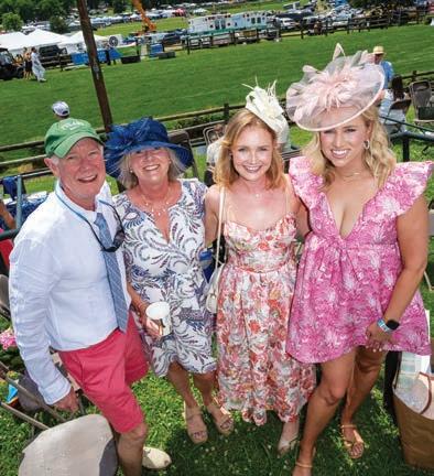 The sunny day peaked at 76 degrees, which meant everyone was in high spirits. The boxes, Iroquois Club and the Paddock Clubs all filled early, leaving lots of time for socializing, shopping and visiting the Nfocus Portrait Studio. Official Iroquois Steeplechase milliner Christine A. Moore was on hand in the Gus Mayer tent, with plenty of hats on display and available for future Steeplechases. As guests unpacked their coolers, heaps of chicken salad and pimento cheese sandwiches began to appear — only to disappear again.