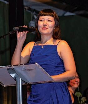 As guests dined and enjoyed the evening, Seth Feman, executive director and CEO of the Frist Art Museum, took the stage. He announced that the museum had record attendance this year and that as patrons of the arts, guests of the gala were supporting “the important, ongoing work of the museum to inspire our community through art and to look at their world in new ways.” To punctuate the evening and reinforce the Frist Art Museum’s mission, Nashville-based artist Sai Clayton spoke about the profound impact of the museum’s work. Sai was one of the first participants in the Frist Art Museum (FAM) Fellowship, which helps students and emerging professionals understand how to research, plan and showcase exhibitions. “The fellowship opened so many doors for me and allowed me to follow my dreams,” Sai said.