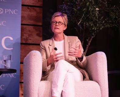After welcome remarks and thank-yous to sponsors, I recognized this year’s Model Behavior honorees and introduced panel moderator Janet Miller, CEO of Colliers International Nashville. Joining her onstage were the Nashville Post’s 2024 Most Powerful Women honorees: Danielle Barnes, CEO and president of Girl Scouts of Middle Tennessee; Katina Beard, CEO of Matthew Walker Comprehensive Health Center; Michelle Kennedy, president and alternate governor of the Nashville Predators; and Candice McQueen, president of Lipscomb University.