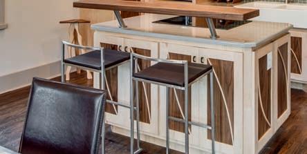 Another highlight of Lola’s is a covered patio with checkerboard concrete floors, wood tables and an assortment of metal chairs with o -white canvas cushions. “Everybody loves outside,” says Joe. “I love to go to bars and sit outside.”