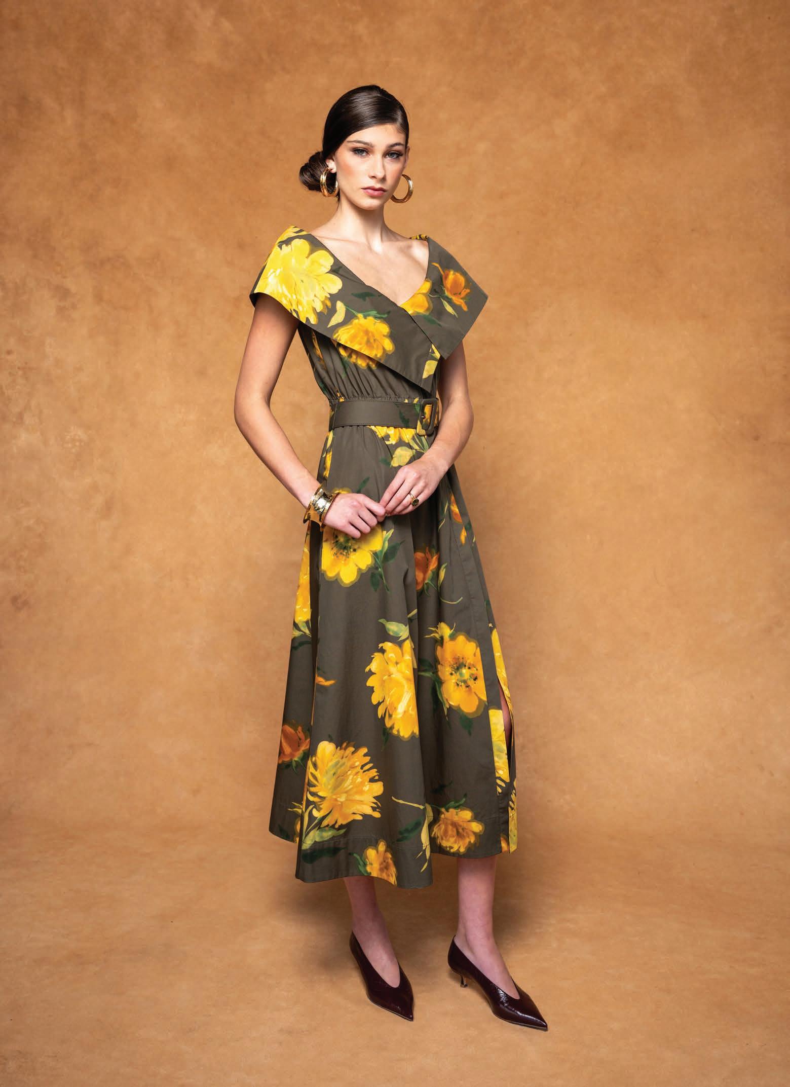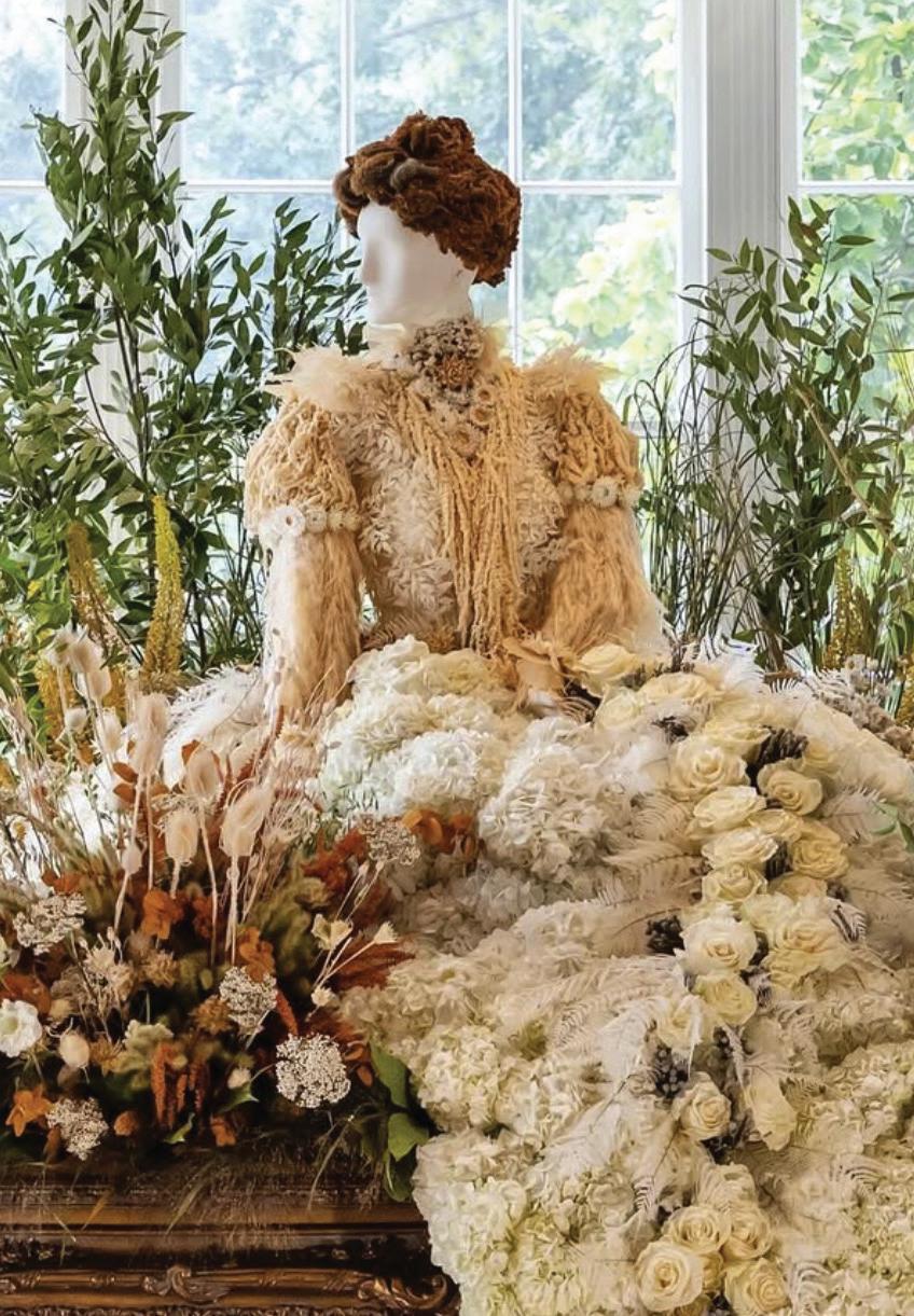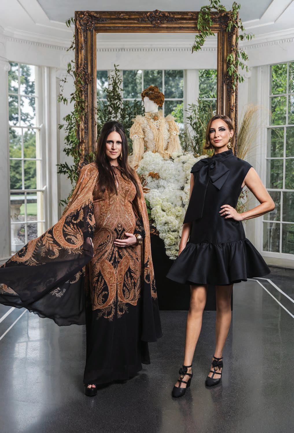Kelleigh Bannen in a Zimmermann Hypnotic caped maxi dress from Gus Mayer and Colson Horton in a Zimmermann Hypnotic bow mini dress from Gus Mayer, photographed by Tausha Dickinson on location at Cheekwood during the Fleurs de Villes ARTISTE exhibit.