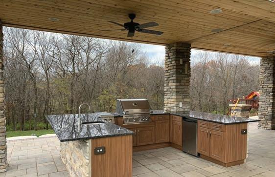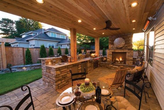 An al fresco dining area takes any meal from ordinary to extraordinary. Think beyond the traditional grill and patio furnishings to create an elegant, open-air gathering spot. Incorporate soffit lights into the ceiling to enhance ambiance and extend the usability of the space.