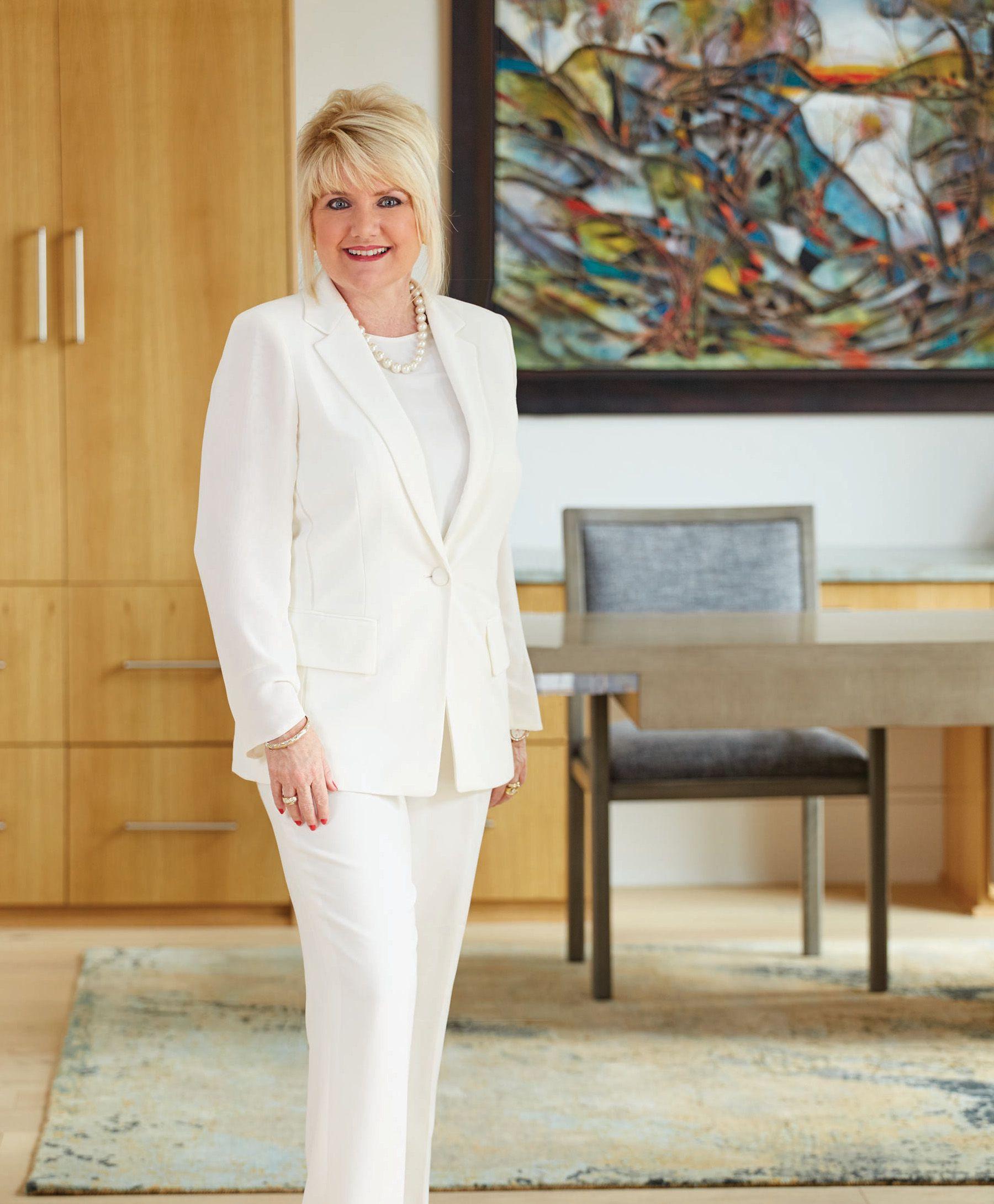 ON THE COVER: The Design Center was the chosen interior designer for the massive Home of Dreams. The team customdesigned much of the furniture. Our favorite part? Six teak dining chairs. “These chairs bring that organic midcentury feel but with a new, modern edge in their design,” said The Design Center’s Debbie Auldridge. One of the chairs is styled here with a large green blown-glass bowl and a sleek console table, also from The Design Center.