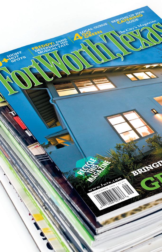 On a personal note, I would like to publicly express thanks to one person in particular. I was a 26year-old, wet-behind-the-ears kid working at a small ad agency when Mark Hulme hired me. From 1991 to 2006, he was my mentor, my business partner and my friend. Though we separated companies three years ago, he remains my friend and mentor. Fort Worth, Texas magazine celebrates its 10th year with this issue because of a seed planted by Mark’s father. Though Louie is no longer with us, I think he would be proud.