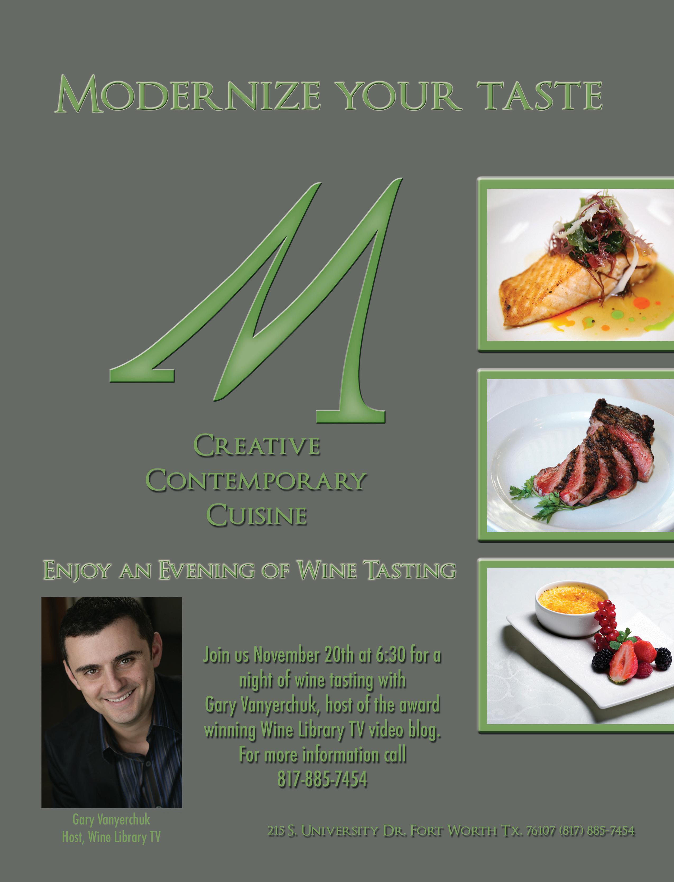 M R ESTAURANT » 215 University Dr. This upscale fusion restaurant serves up a wide array of culinary favorites, including juicy filet mignon cooked to perfection. The fare can be described as creative, contemporary cuisine in a modern, edgy atmosphere. 5pm-11am Mon.-Sun.; 10:30pm-2am Fri.-Sat. $$-$$$