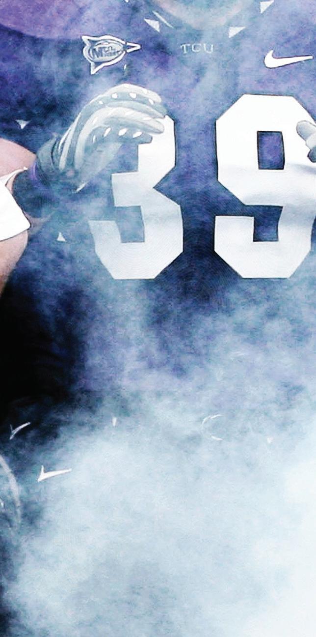 Dan Jenkins is one of America’s most acclaimed sportswriters and a bestselling novelist. A native of Fort Worth and a graduate of Paschal High and TCU, Dan started at the long-gone Fort Worth Press in 1948. He made his way to New York and was writing for Sports Illustrated in 1962. Twenty-four years and 500 bylines later, he took early retirement and went to Golf Digest, where he still types for food and a living. Author of 20 books, 10 of which are novels and several of those best sellers, Dan began with SemiTough in 1972, which climbed to No. 1. Dan’s journalism awards are too numerous to mention. For this issue, Dan has contributed an in-depth, comparative look at TCU’s football teams of the past and the team of today. To read more about the highly ranked TCU Horned Frogs, turn to page 40.