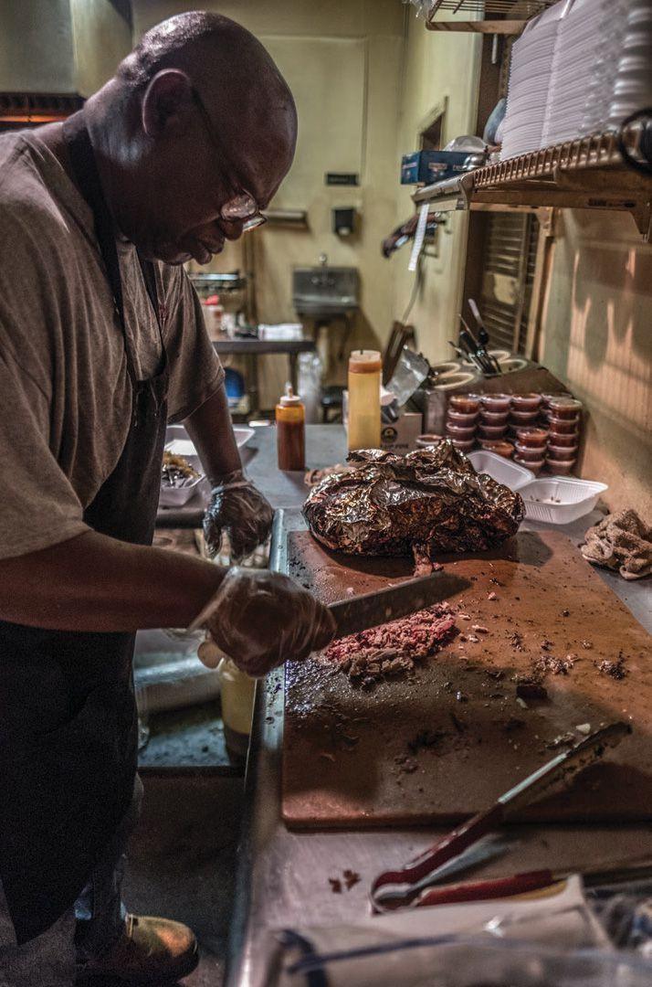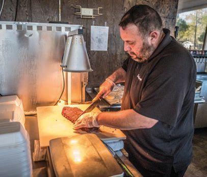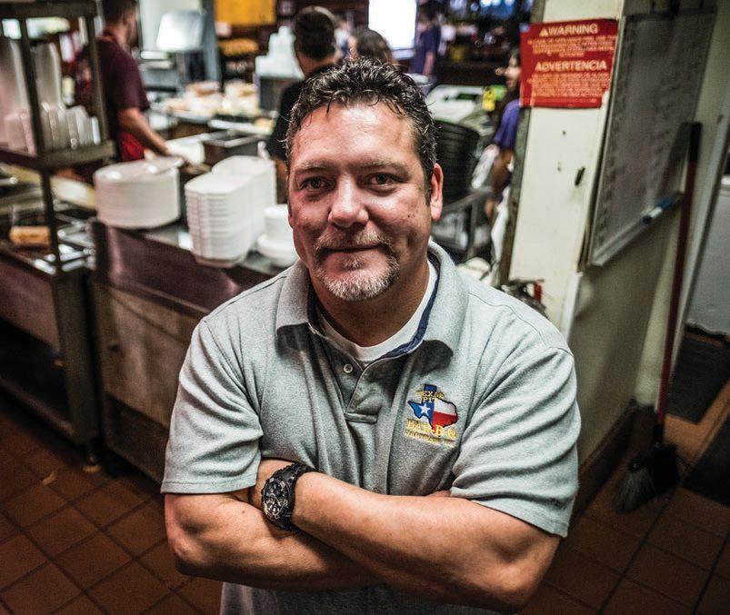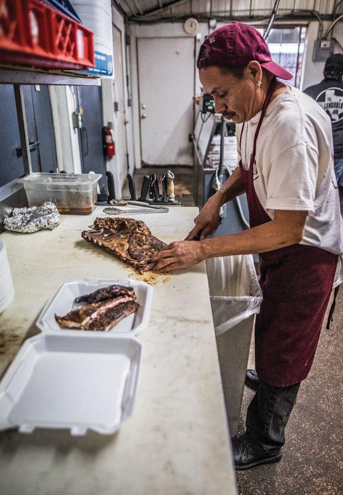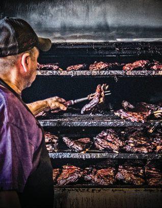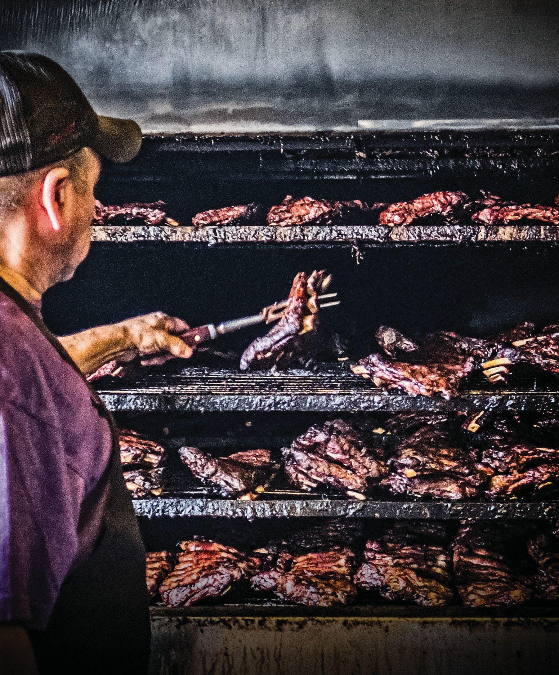 captured this cover shot of a patient pitmaster and his meat at Riscky’s BARB-Q & Deli’s original location on Azle Avenue near Fort Worth’s North Side.