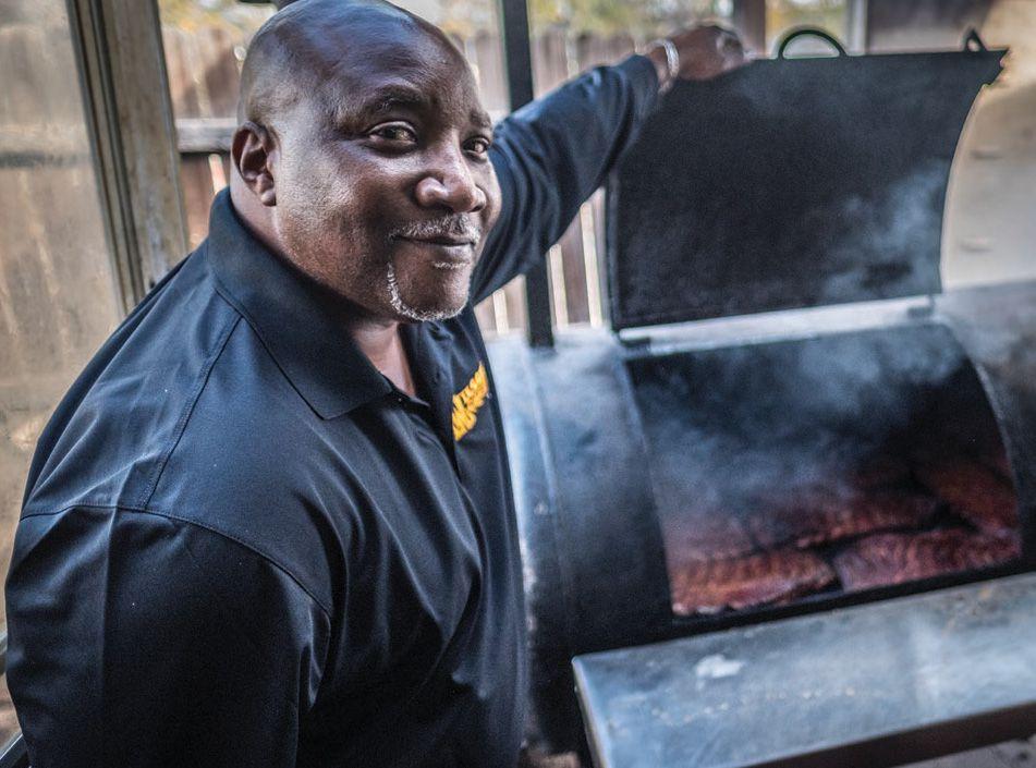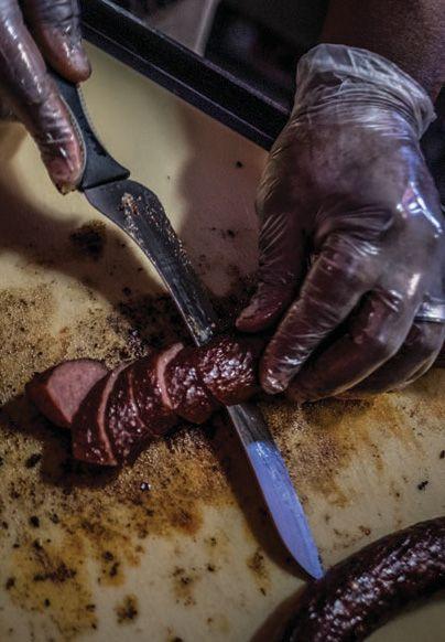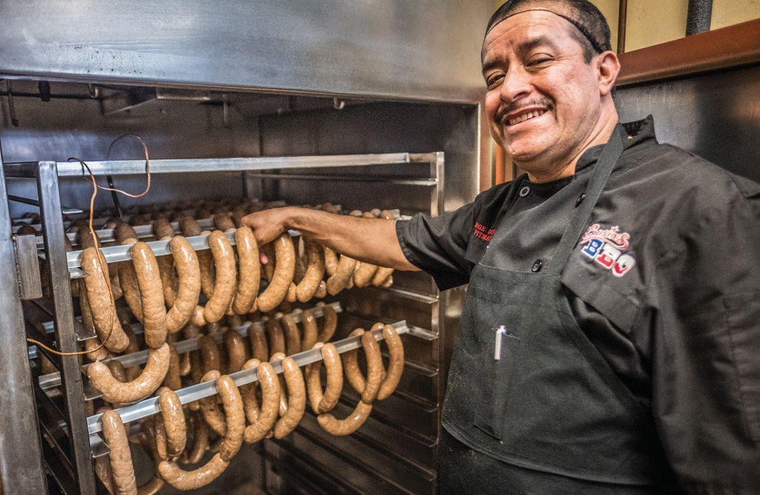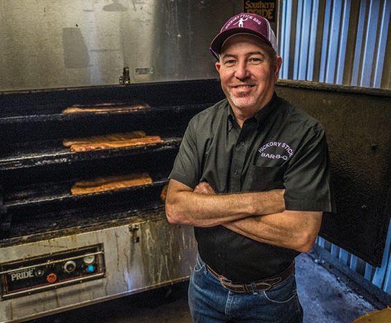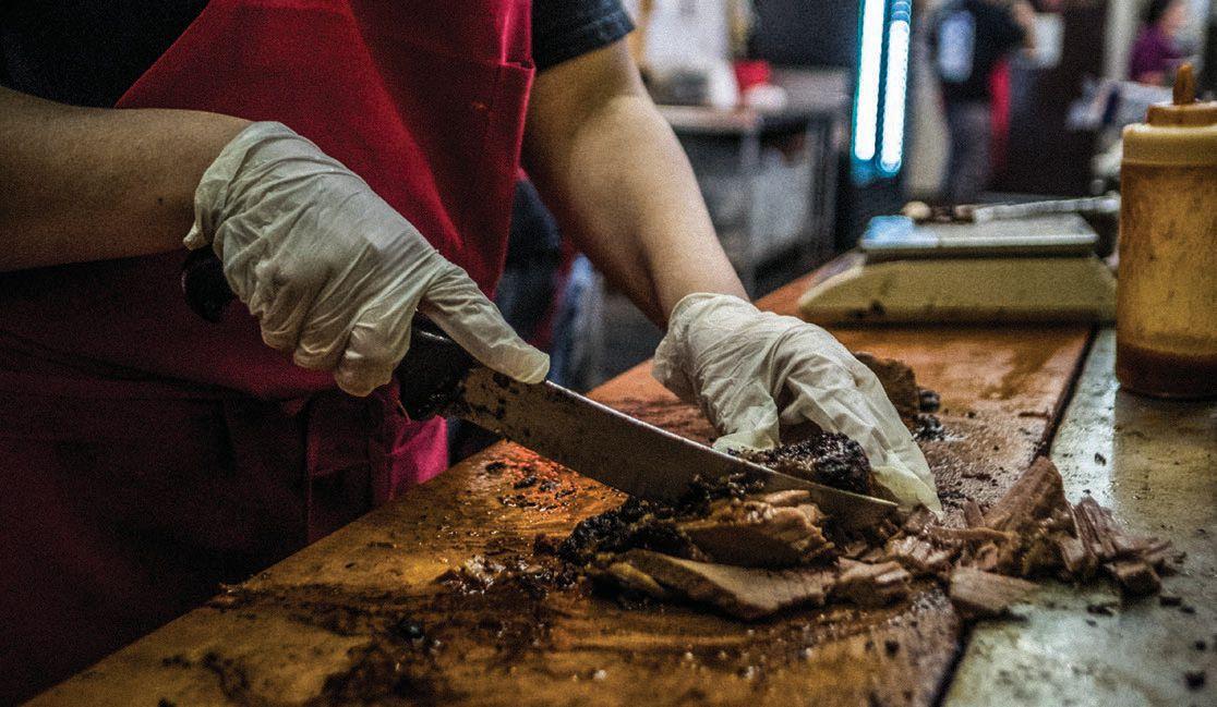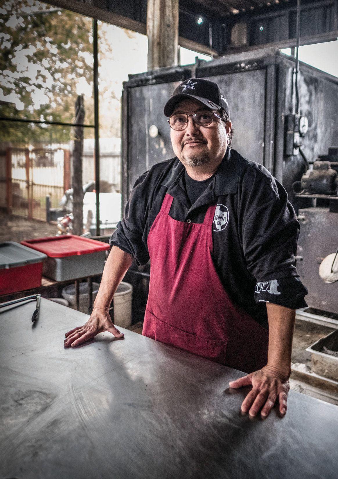captured this cover shot of a patient pitmaster and his meat at Riscky’s BARB-Q & Deli’s original location on Azle Avenue near Fort Worth’s North Side.