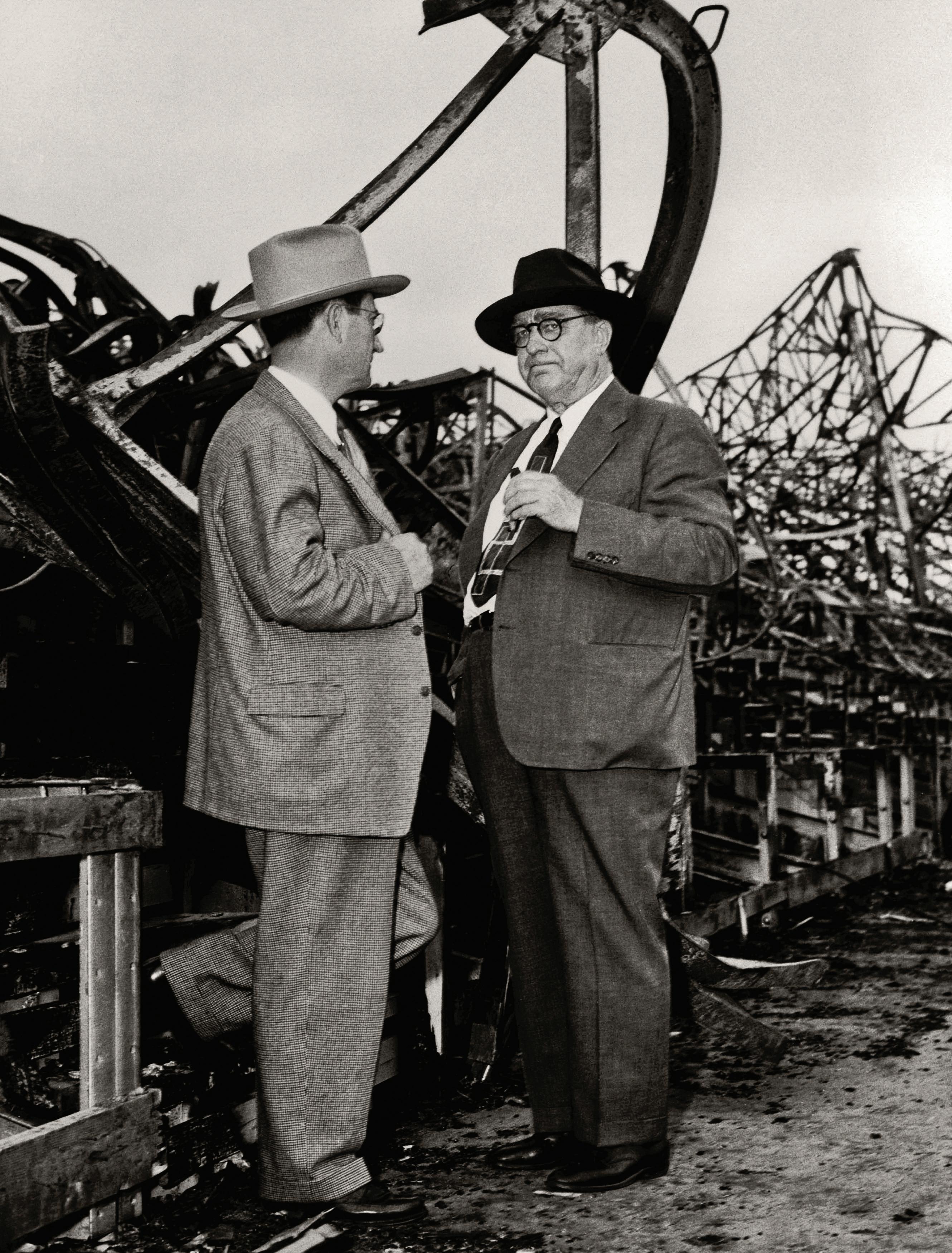 Cats’ president John Reeves (left) and Dodgers’ general manager Branch Rickey (right) survey the damage after a famous fire destroyed LaGrave Field in May 1949. Current Cats’ owner Carl Bell rebuilt the ballpark in 2002, with home plate sitting exactly where it did in 1926. Fans now have the opportunity to enjoy baseball at the same historic place graced by Hall of Famers Babe Ruth, Lou Gehrig, Joe DiMaggio and Jackie Robinson.
