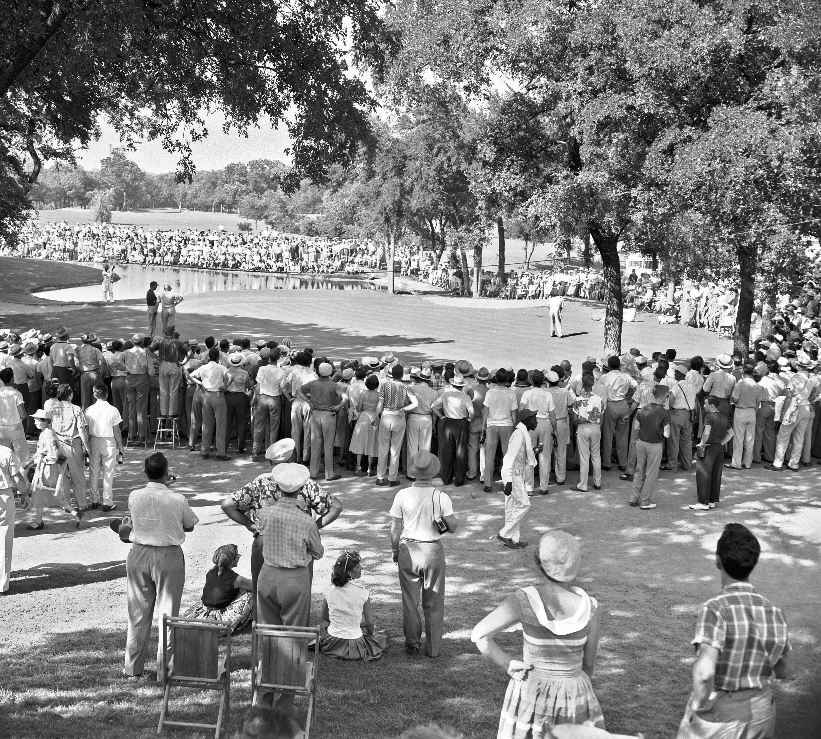 There was no shortage of fans when Ben Hogan took the course on May 27, 1951, at the Colonial Invitational Golf Tournament. Crowds watched in anticipation as Hogan hit his second shot on the second hole on the last day of play.