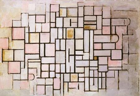 La composición cuadriculada proporciona una sensación de orden y estructura. Los elementos se distribuyen dentro de los rectángulos de manera que se facilita la lectura visual o la comprensión del espacio.