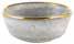 og funktionel. Hver stentøjsdel har en unik glasur som bærer karakteristiske spor af det traditionelle håndværk, som gør udtrykket ægte og levende. Farverne i kollektionen er i pebret toner med en levende glasur som er skabt i hånden. Her har den mindste skål og det runde fad et glamourøst præg af håndmalede kanter i ægte guld.