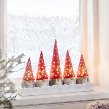 Elektrisk lysestake med grantre Elektrisk lysestake med 5 nisser 27 cm, høyde 32 cm 40 x 9 cm, høyde 28 cm Ord. pris 2890 kr (10012596) Ord. pris 2890 kr (10011661)