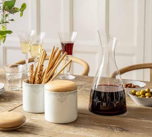 Benytt sjansen til å komplettere ditt servise med fordelaktige rabatter! Trenger du flere tallerkener vil vi tipse deg om våre smarte sett med middagstallerken, frokosttallerken og dyp tallerken, med opptil 30% rabatt. Vi presenterer også herlige vårnyheter – en fin og funksjonell oppbevaringskrukke i porselen med lokk, samt en eksklusiv karaffel i krystall.